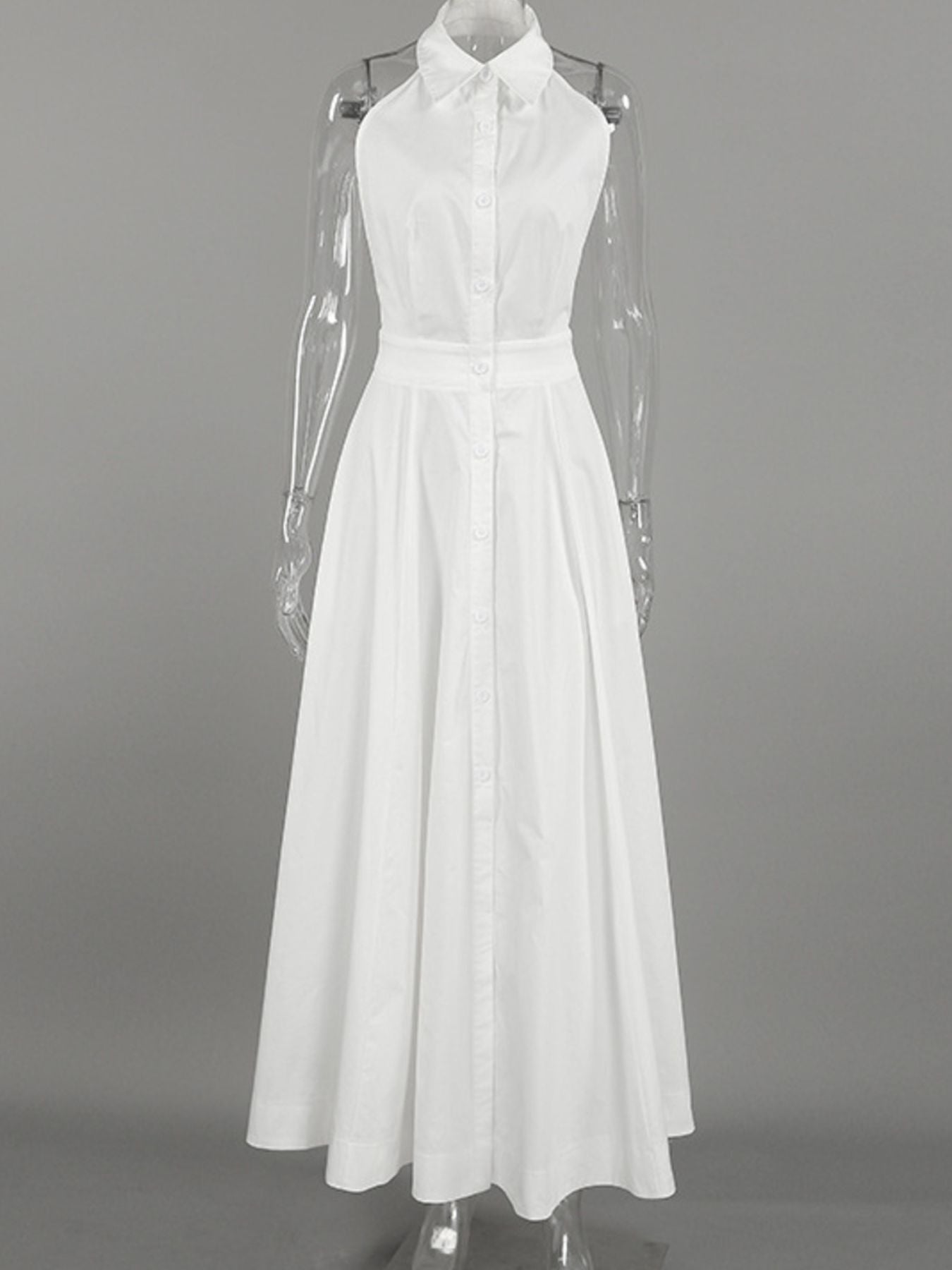 Backless Sleeveless Button Front Maxi Dress