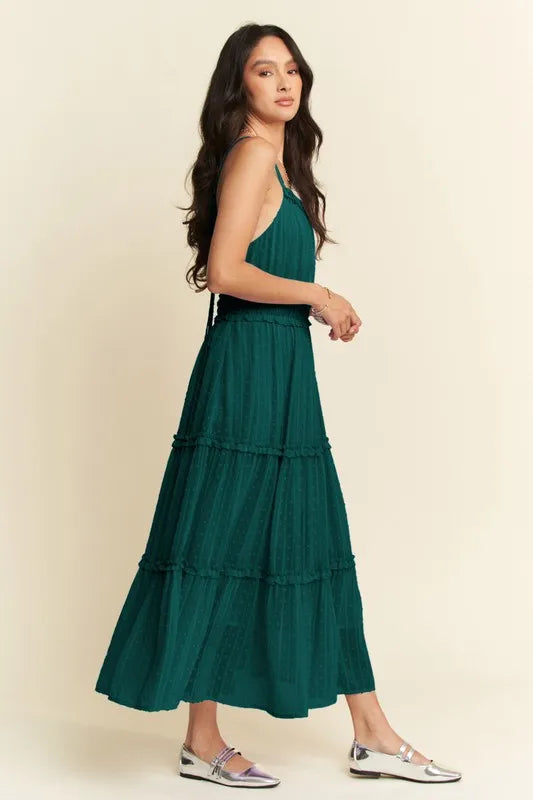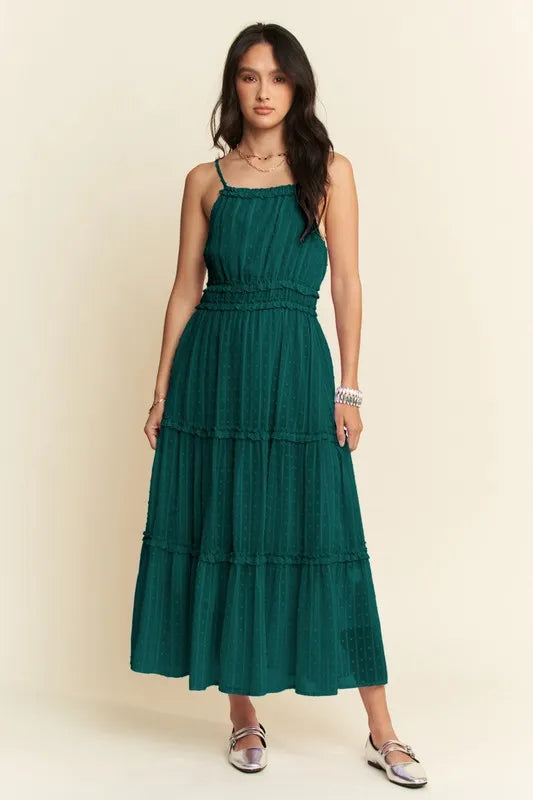 Davi & Dani Texture Swiss Dot Ruffle Square Neck Midi Dress