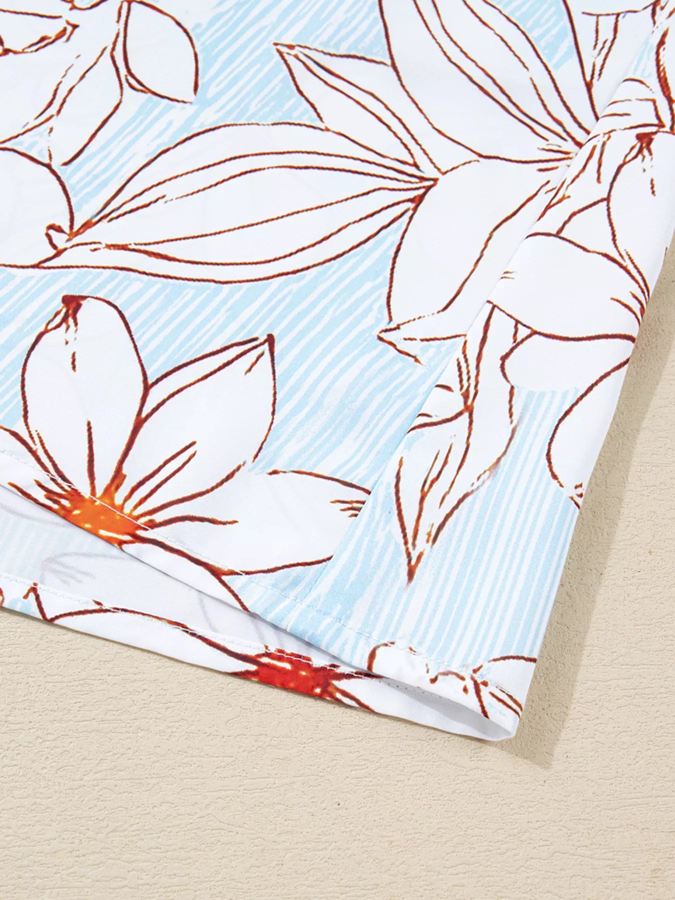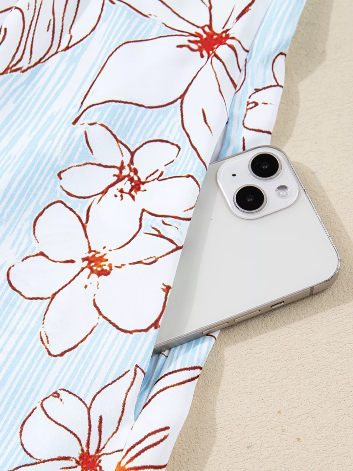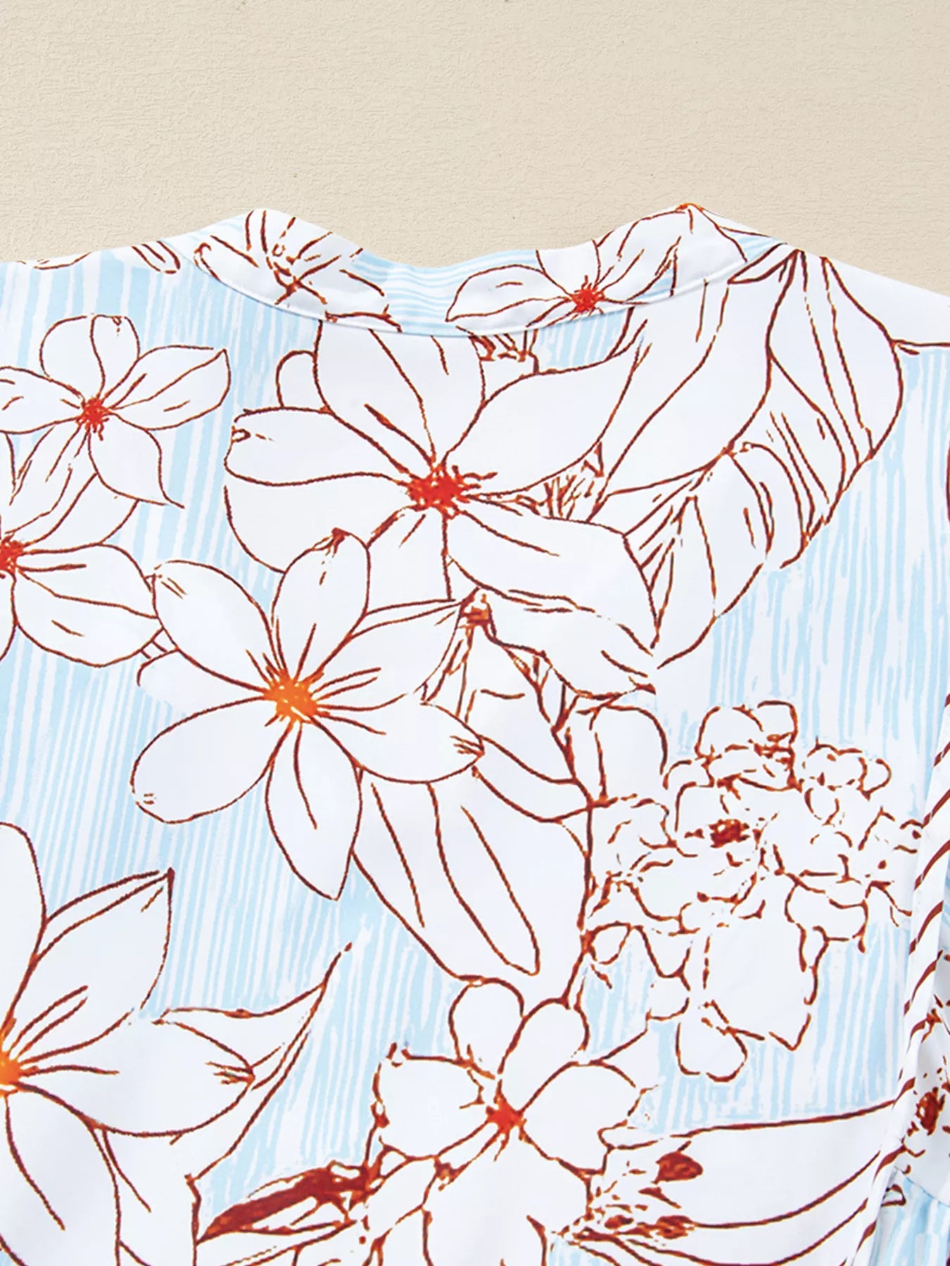 Floral Print Tie Neck Long Sleeve Mini Dress