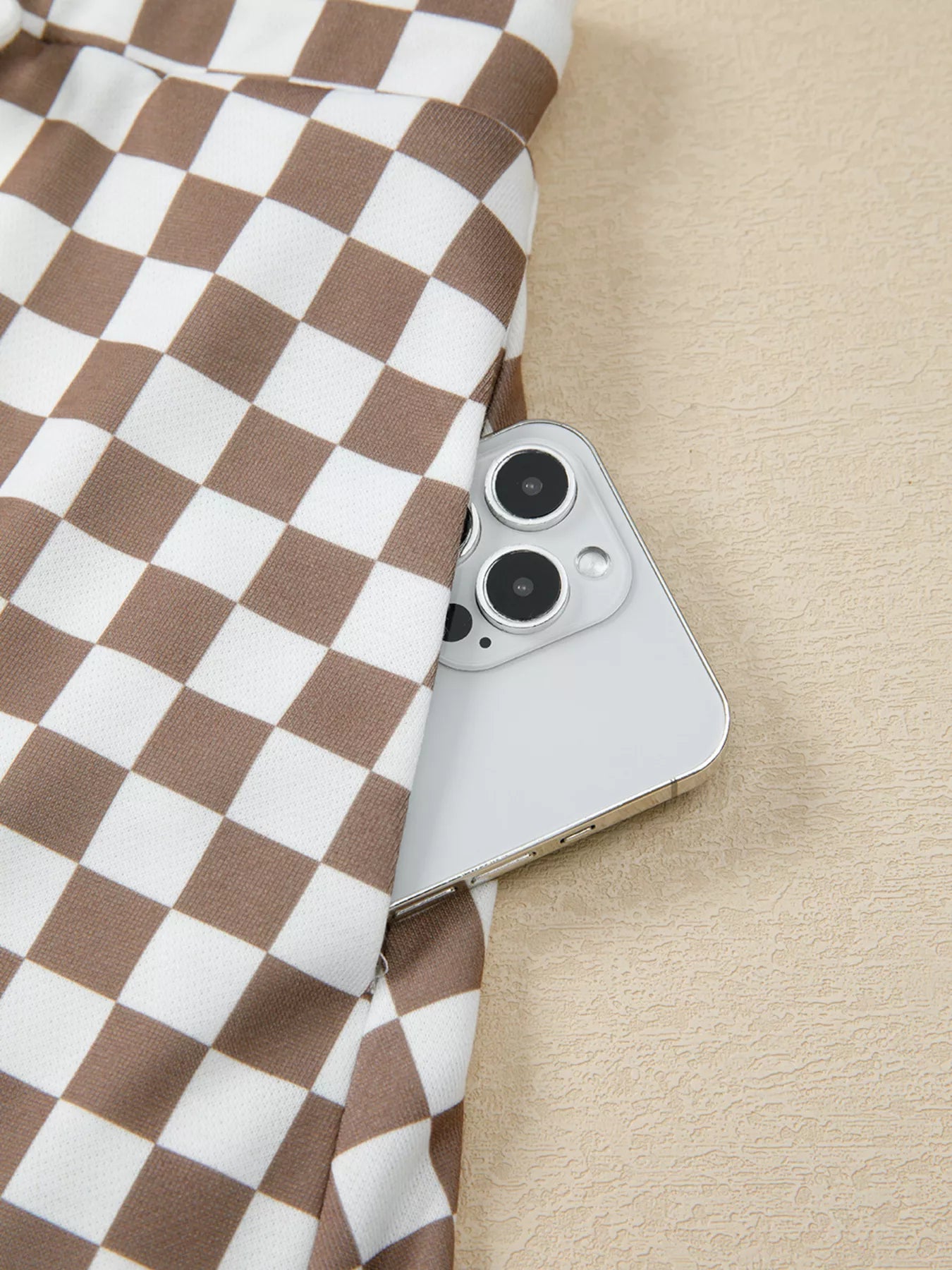 Checkered Print Polo Collar Cropped Long Sleeve Top and Drawstring Mini Skirt Set