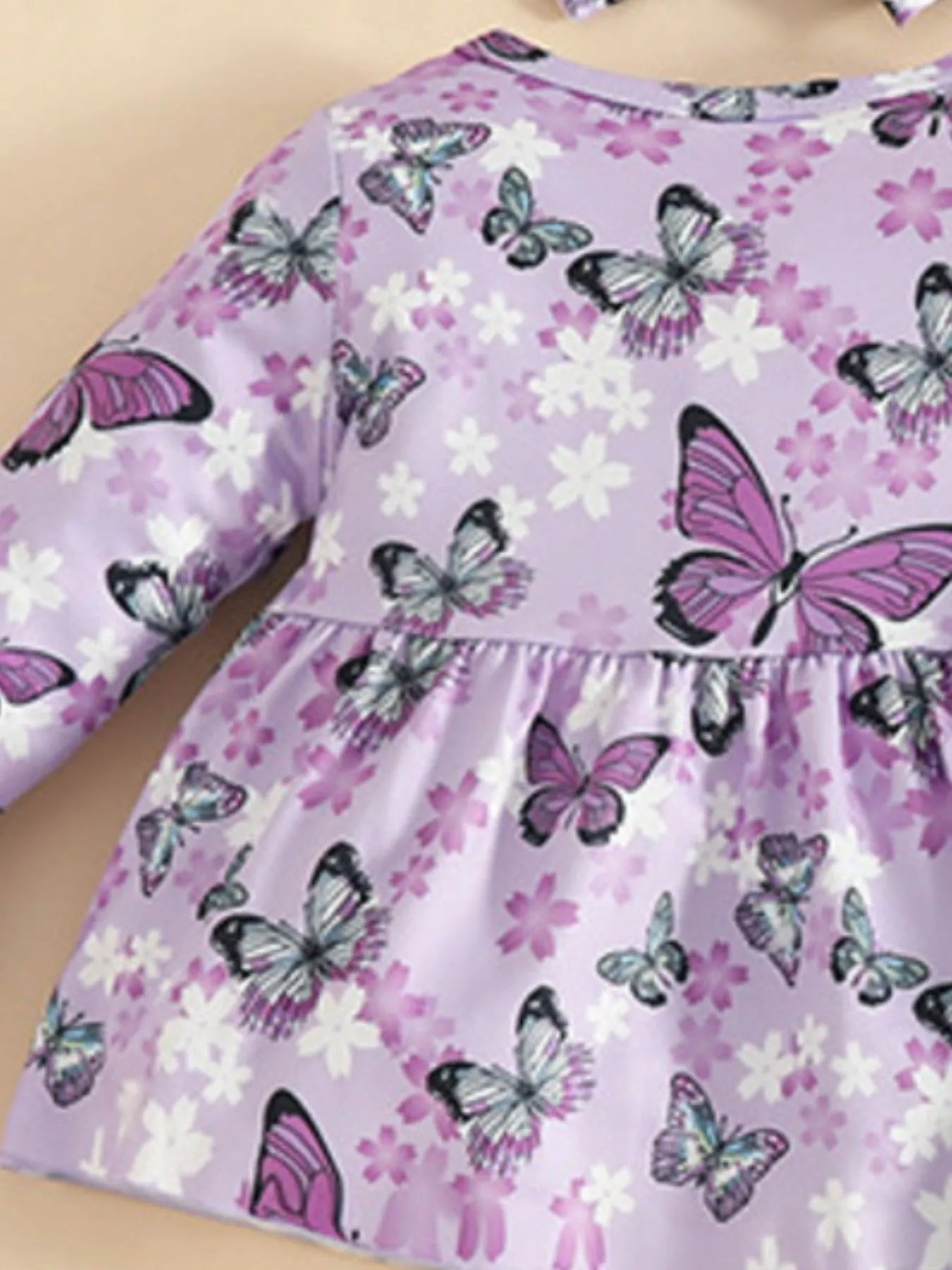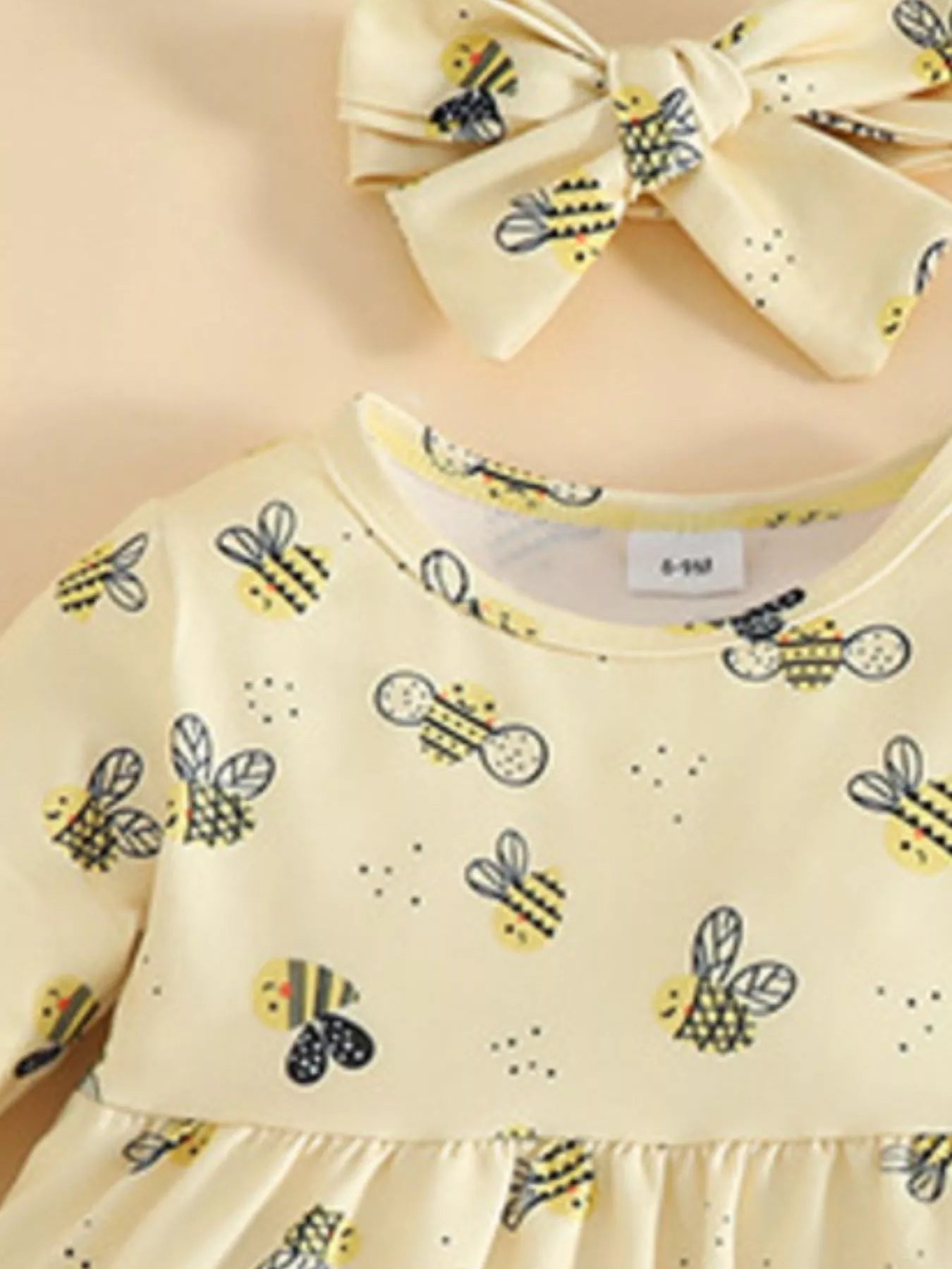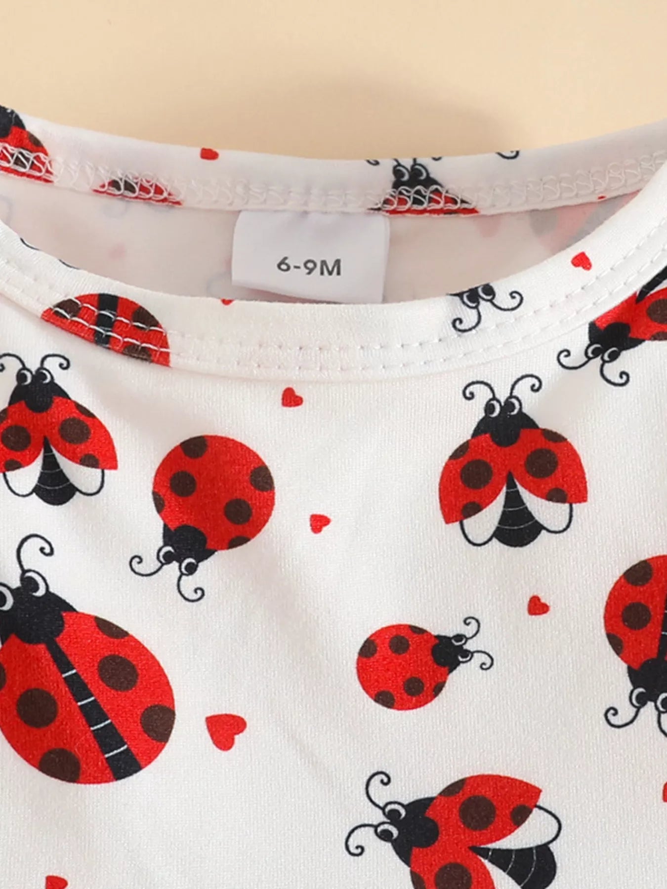 Children's Ladybug Print Ruffle Hem Top & Jeans Set with Headband