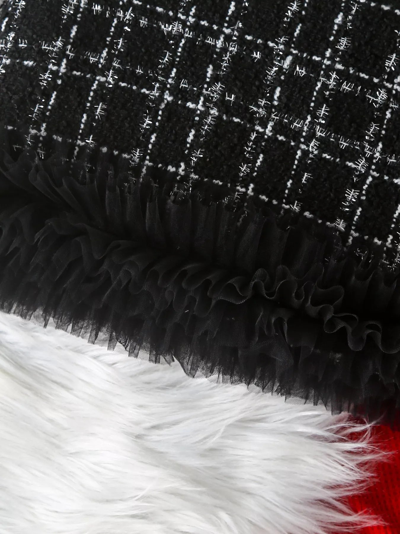 Children's Floral Applique Ribbed Top & Button Decor Skirt Set