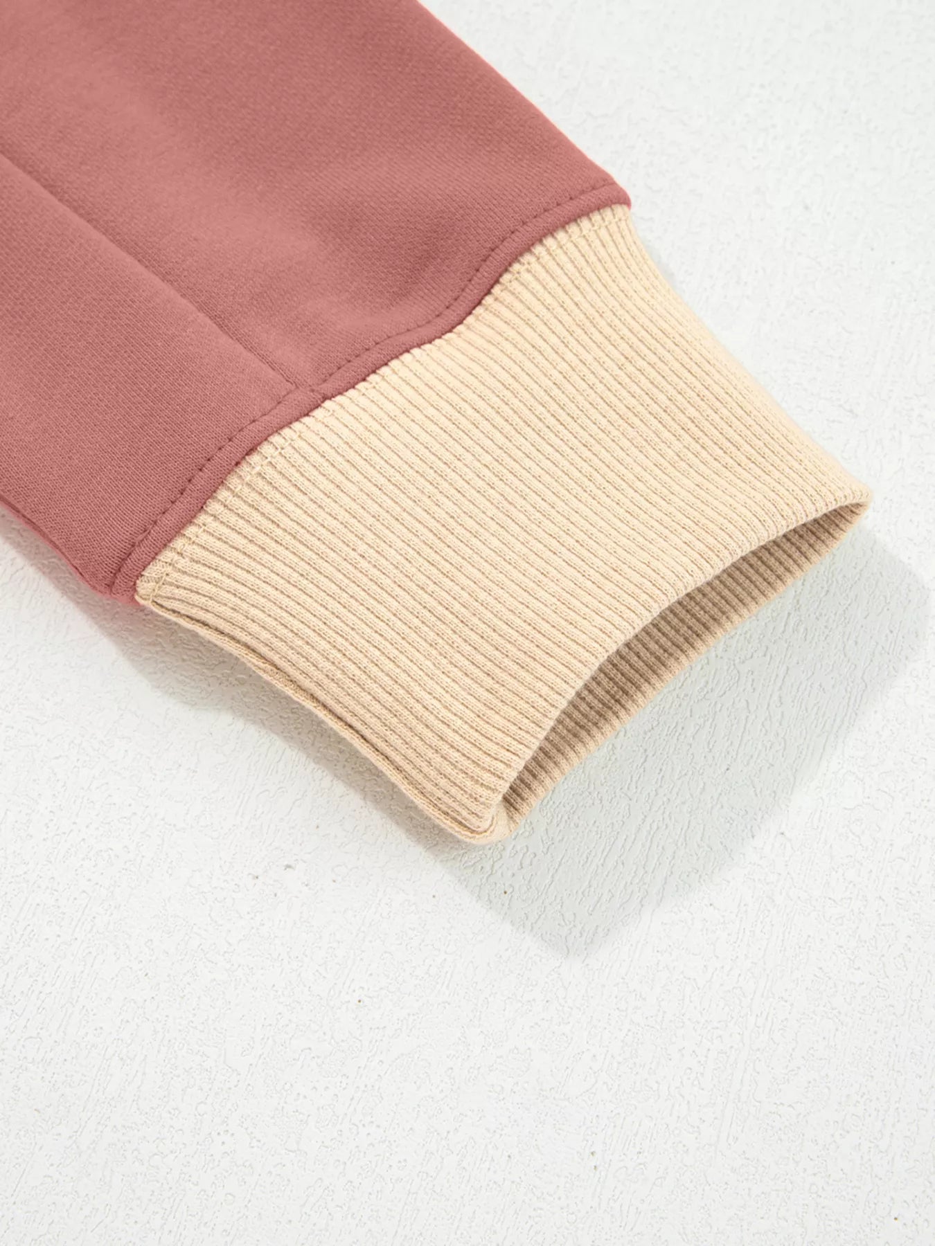 Contrast Scallop Trim V Neck Long Sleeve Blouse