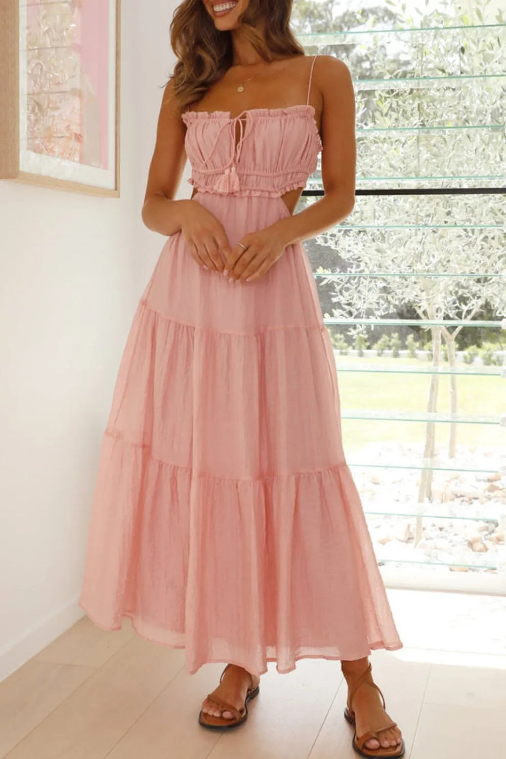 Cutout Square Neck Midi Cami Dress