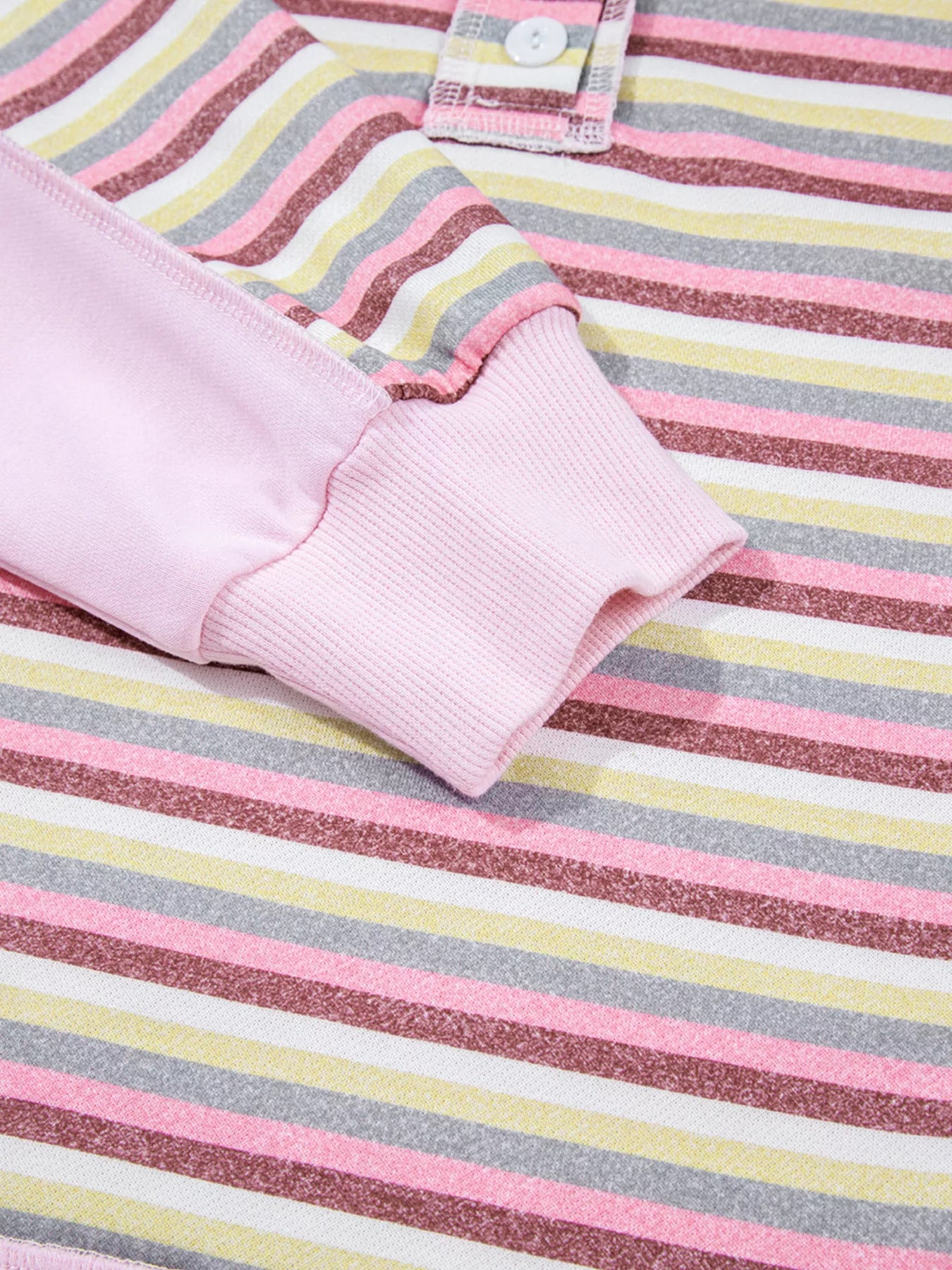Exposed Seam Color Block Striped Patchwork Loose Henley Sweatshirt