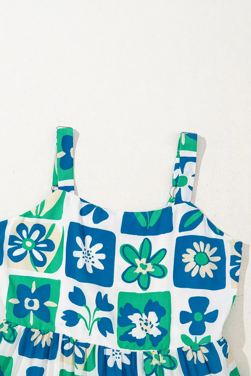 Floral Mixed Pattern Ruffle Flutter Sleeve Buttoned Dress