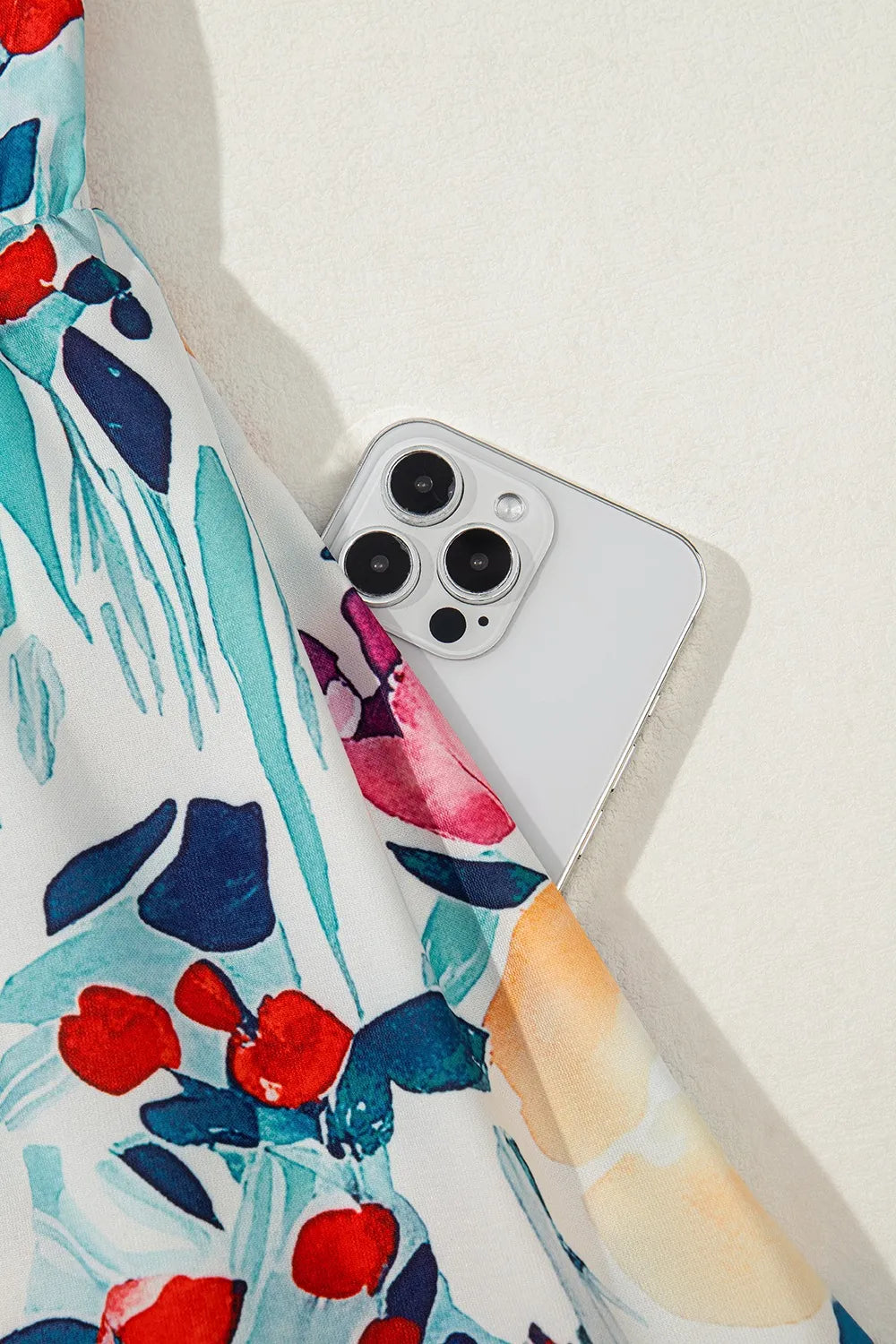 Floral Print Zipper Ruffled Short Sleeve High Waist Mini Dress