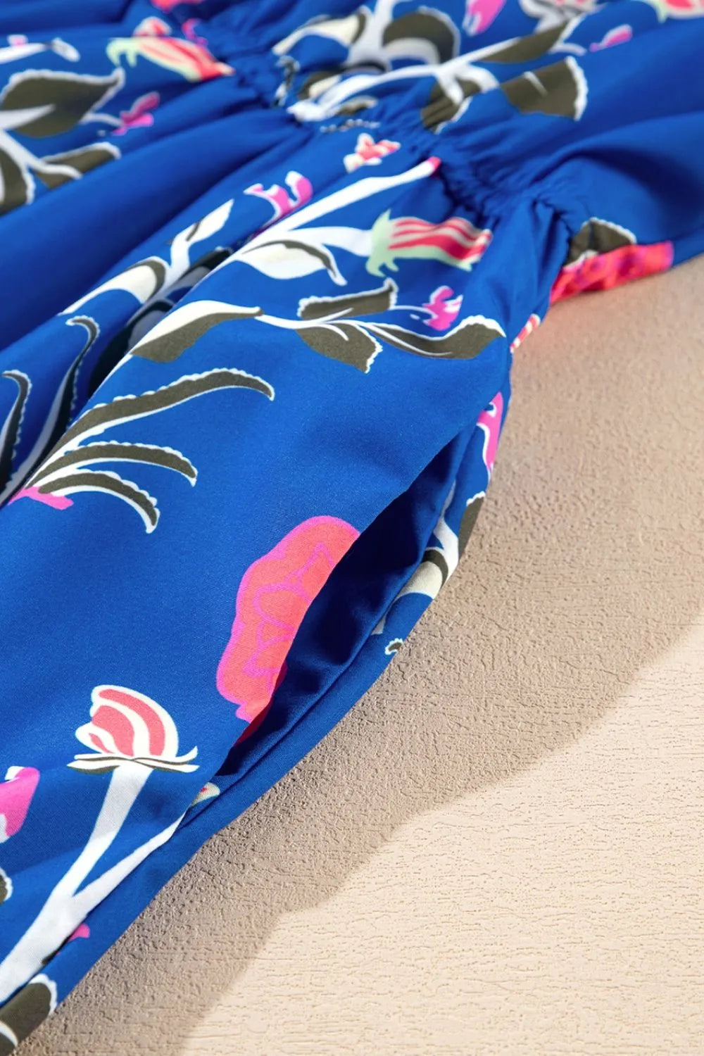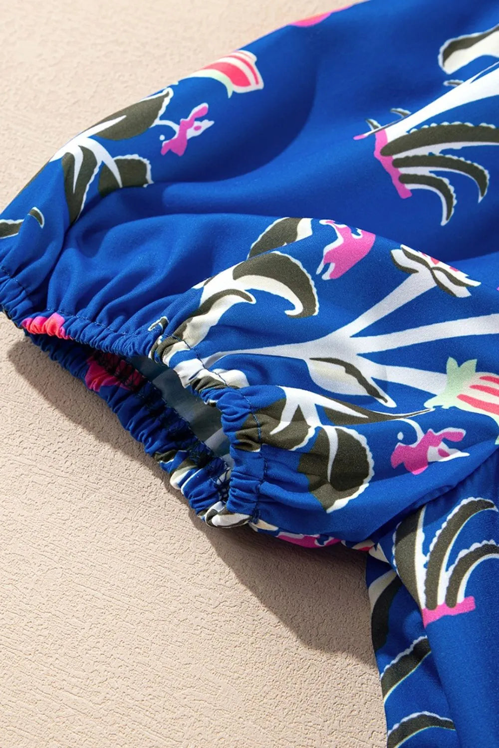 Floral Puff Short Sleeve Notched High Waist Dress