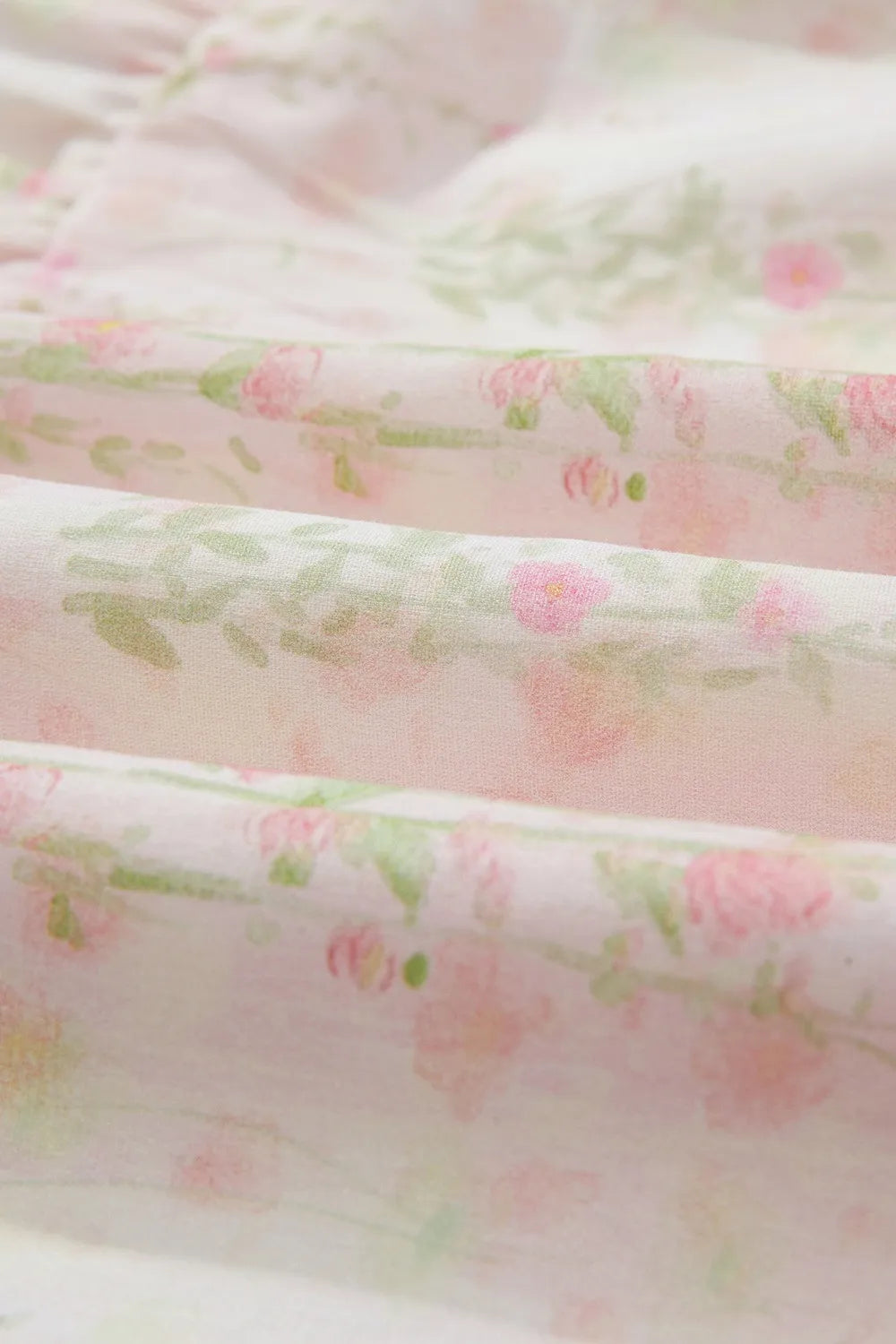 Floral Puff Sleeve Square Neck Knotted Open Back Ruffled Mini Dress