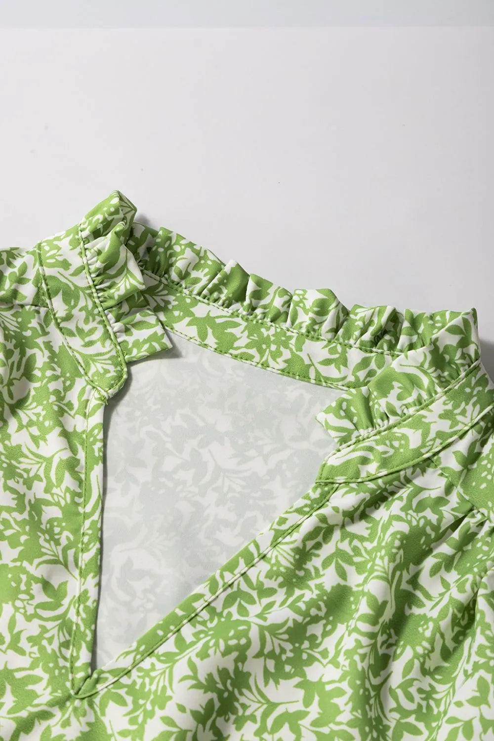 Floral Ruffle Puff Short Sleeve Frilled Notched Blouse