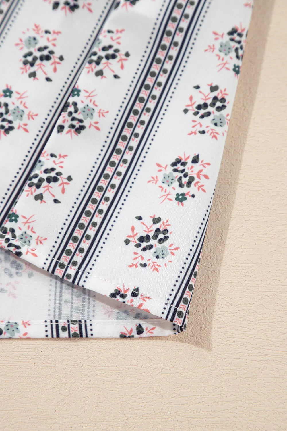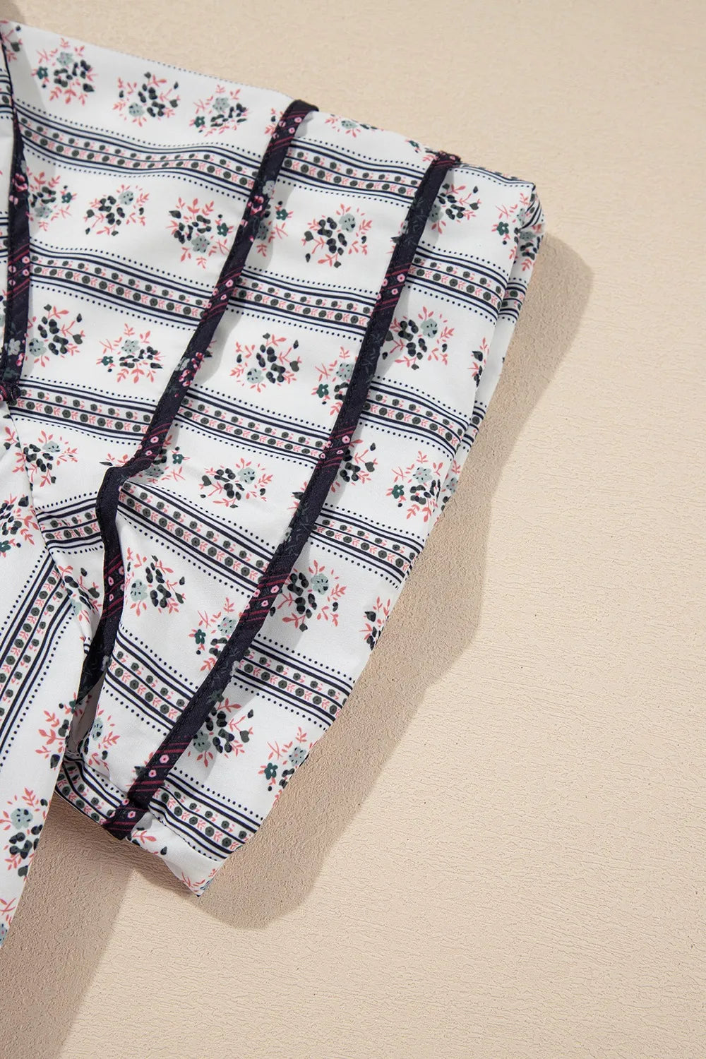 Floral Ruffled Collar Short Puff Sleeve Printed Blouse