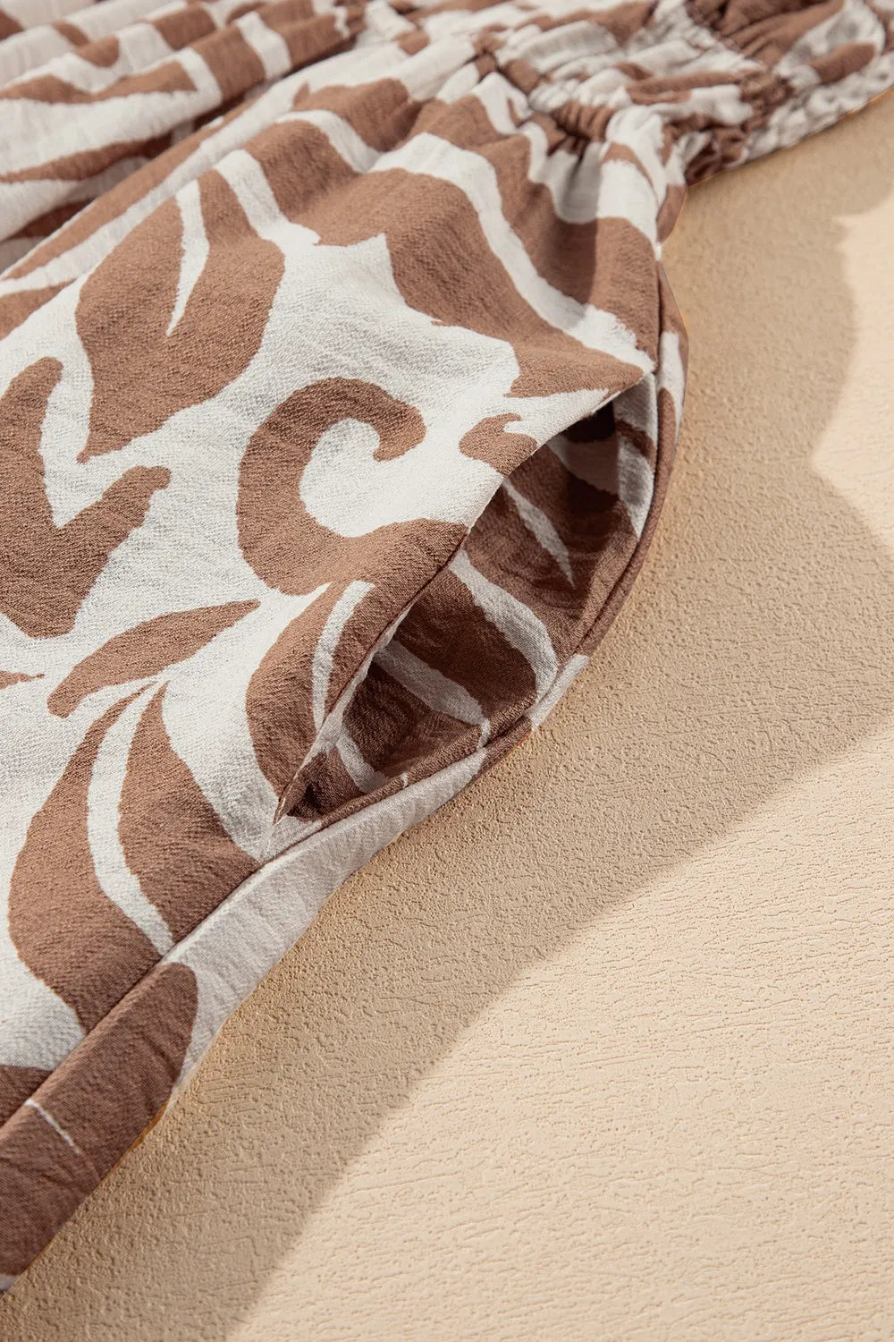 Contrast Scallop Trim V Neck Long Sleeve Blouse