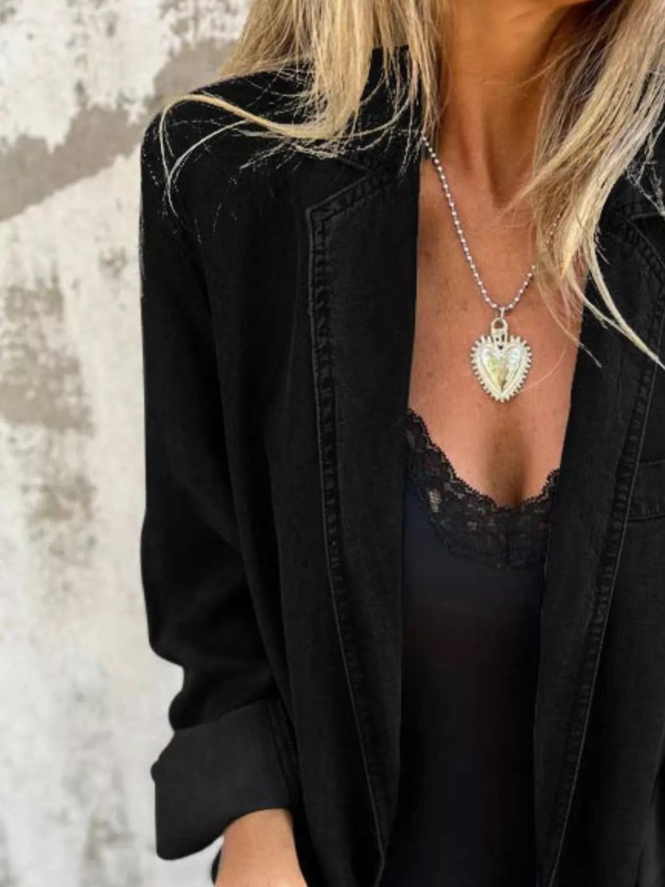 Full Size Button Down Denim Blazer Plus Size
