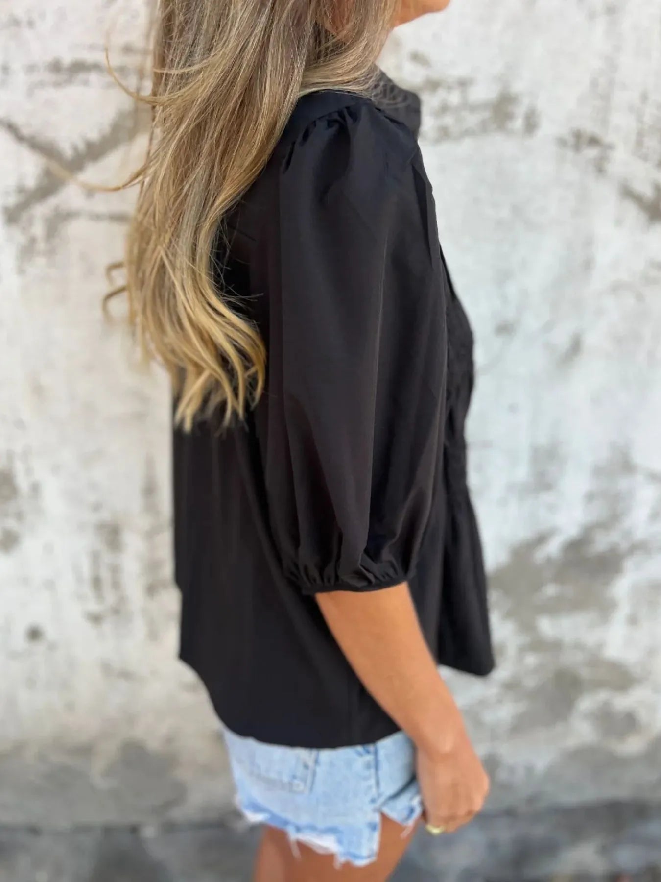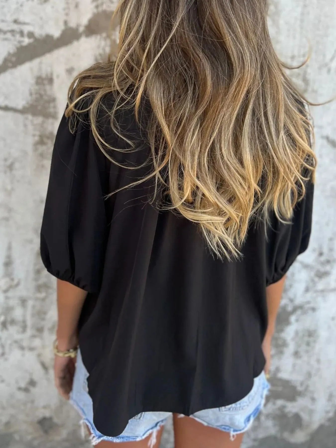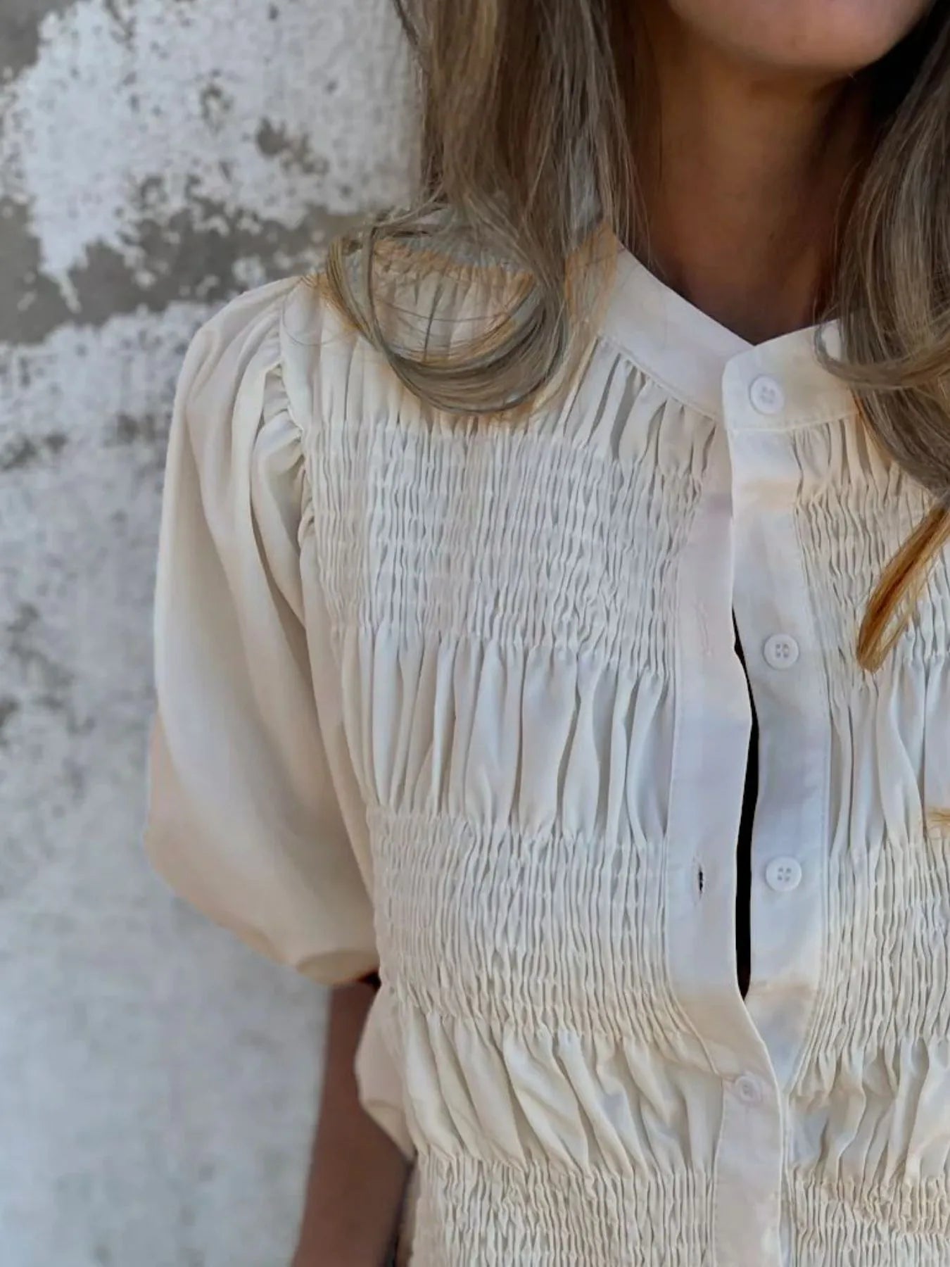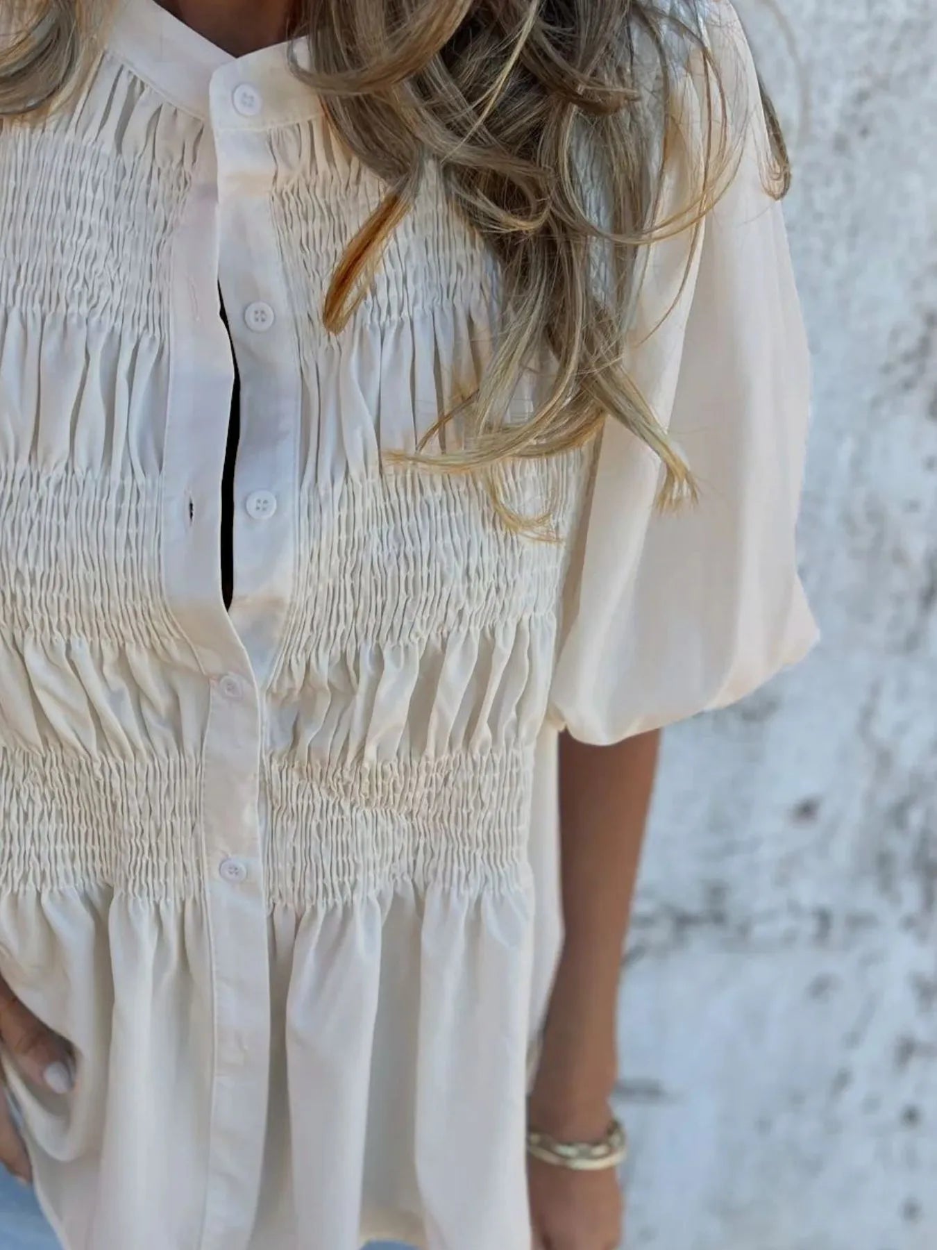 Full Size Smocked Button Front Puff Sleeve Shirt Plus Size