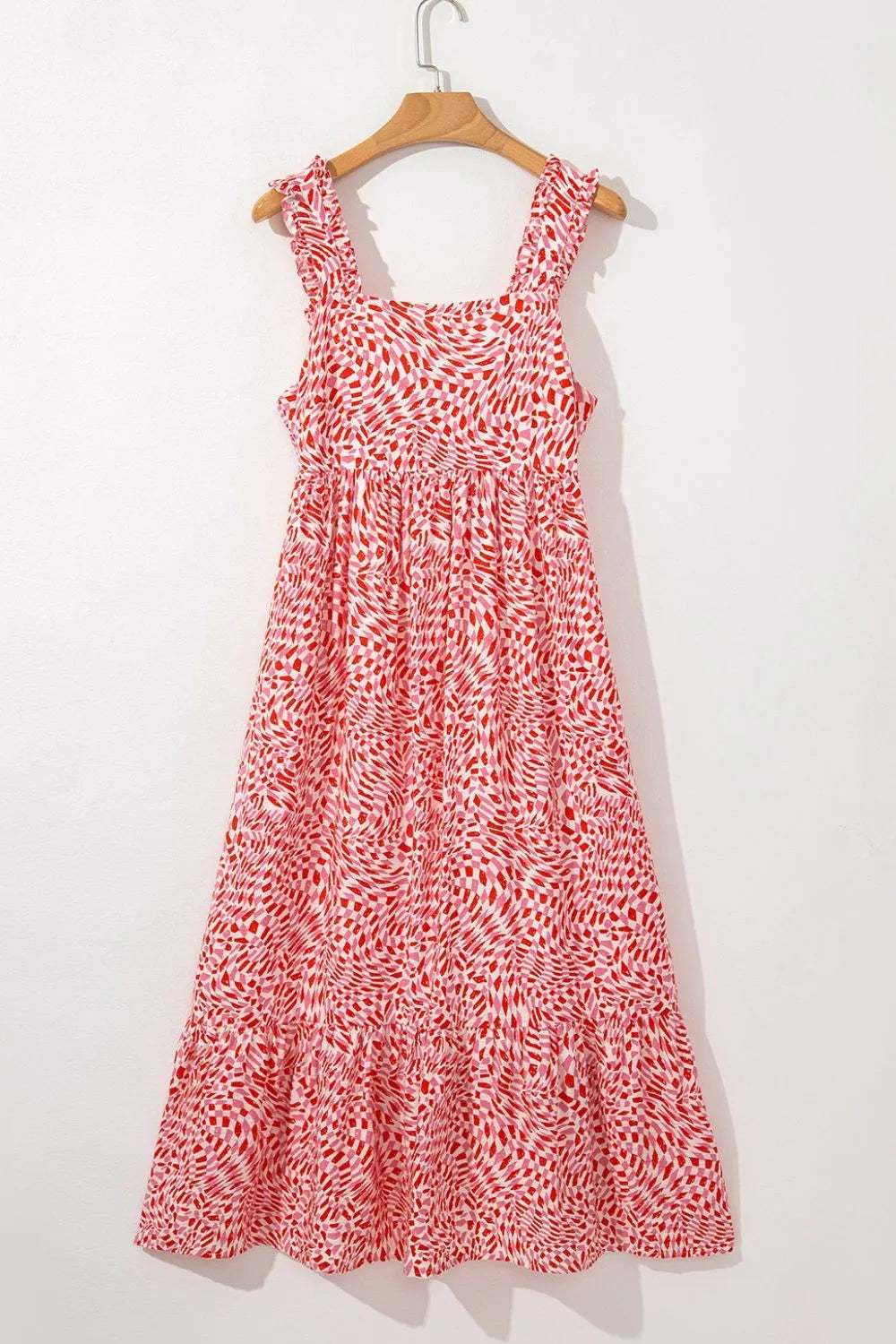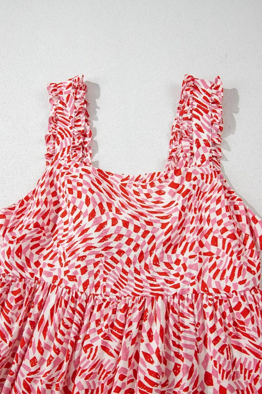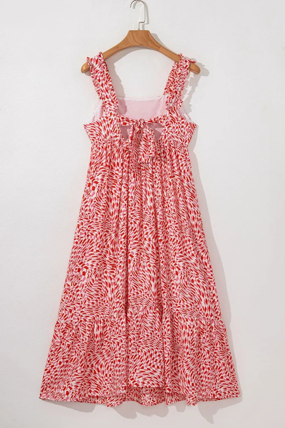 Geometric Print Knot Back Sleeveless Ruffle Hem Dress