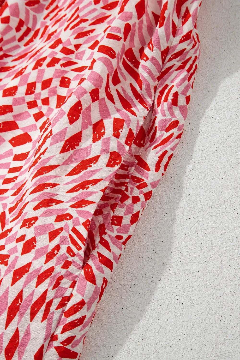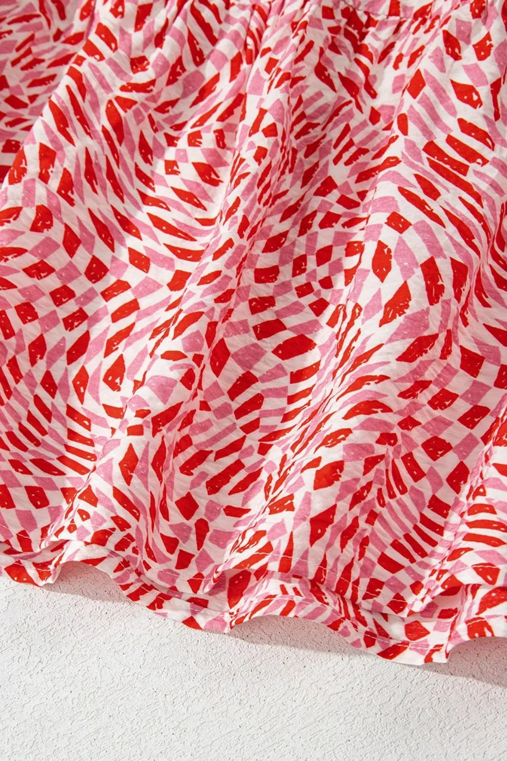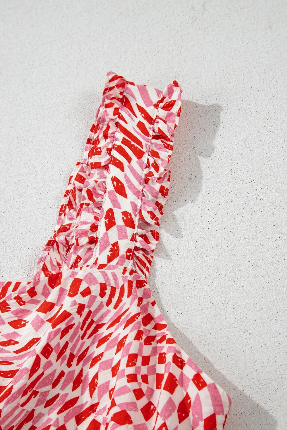 Geometric Print Knot Back Sleeveless Ruffle Hem Dress