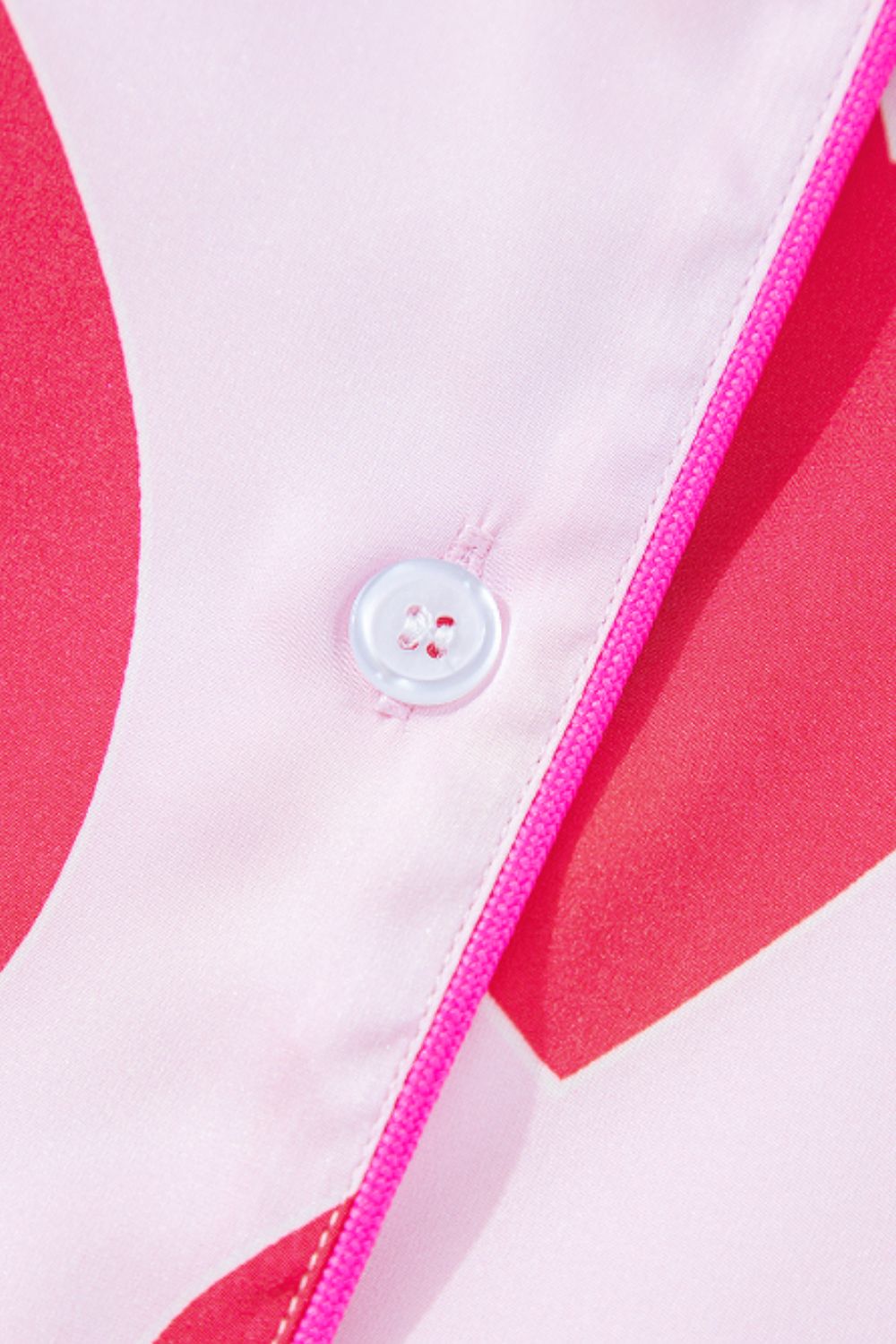 Heart Collared Neck Short Sleeve Top and Pants Lounge Set