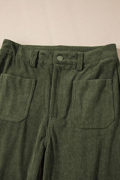High Waist Square Pockets Corduroy Pants