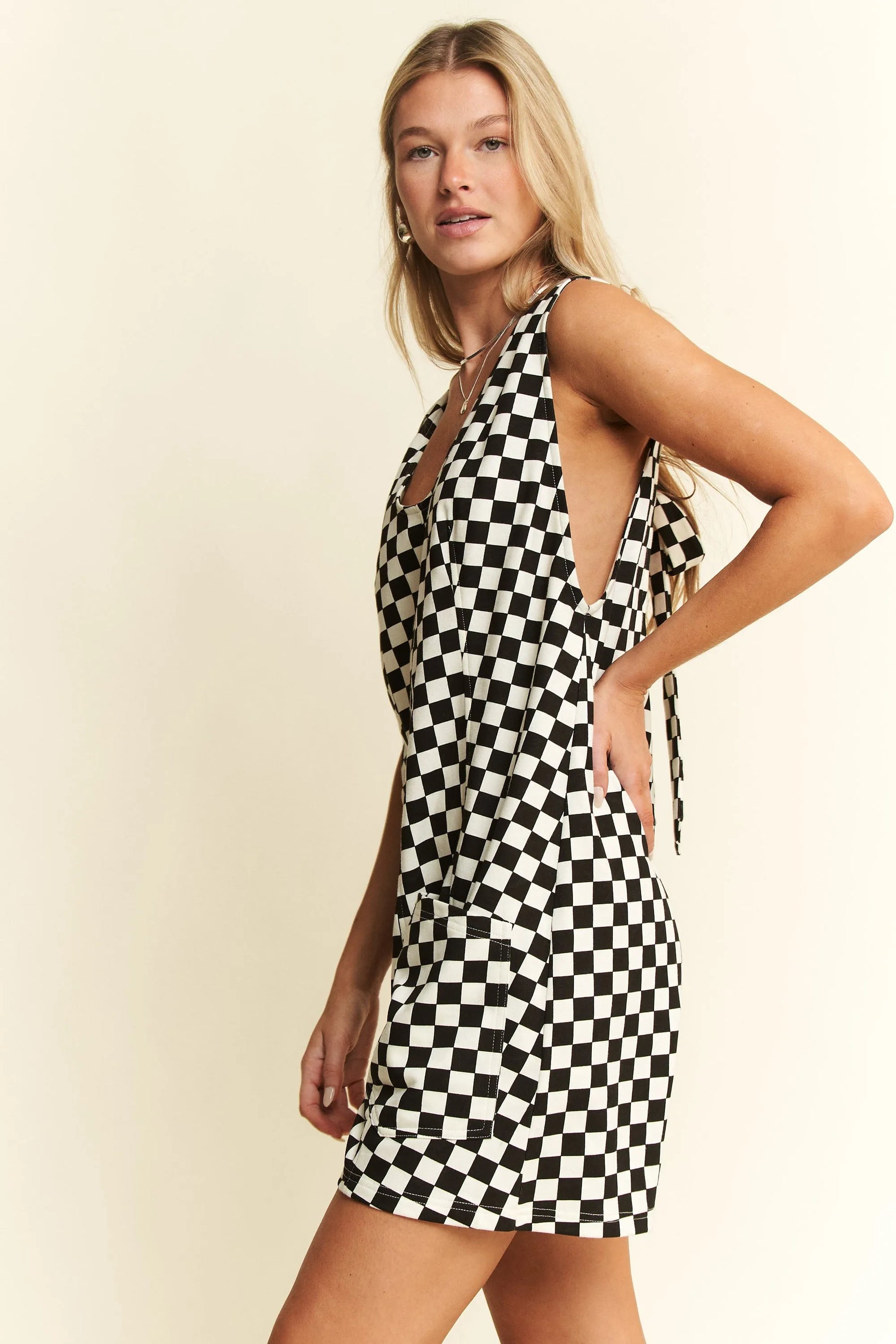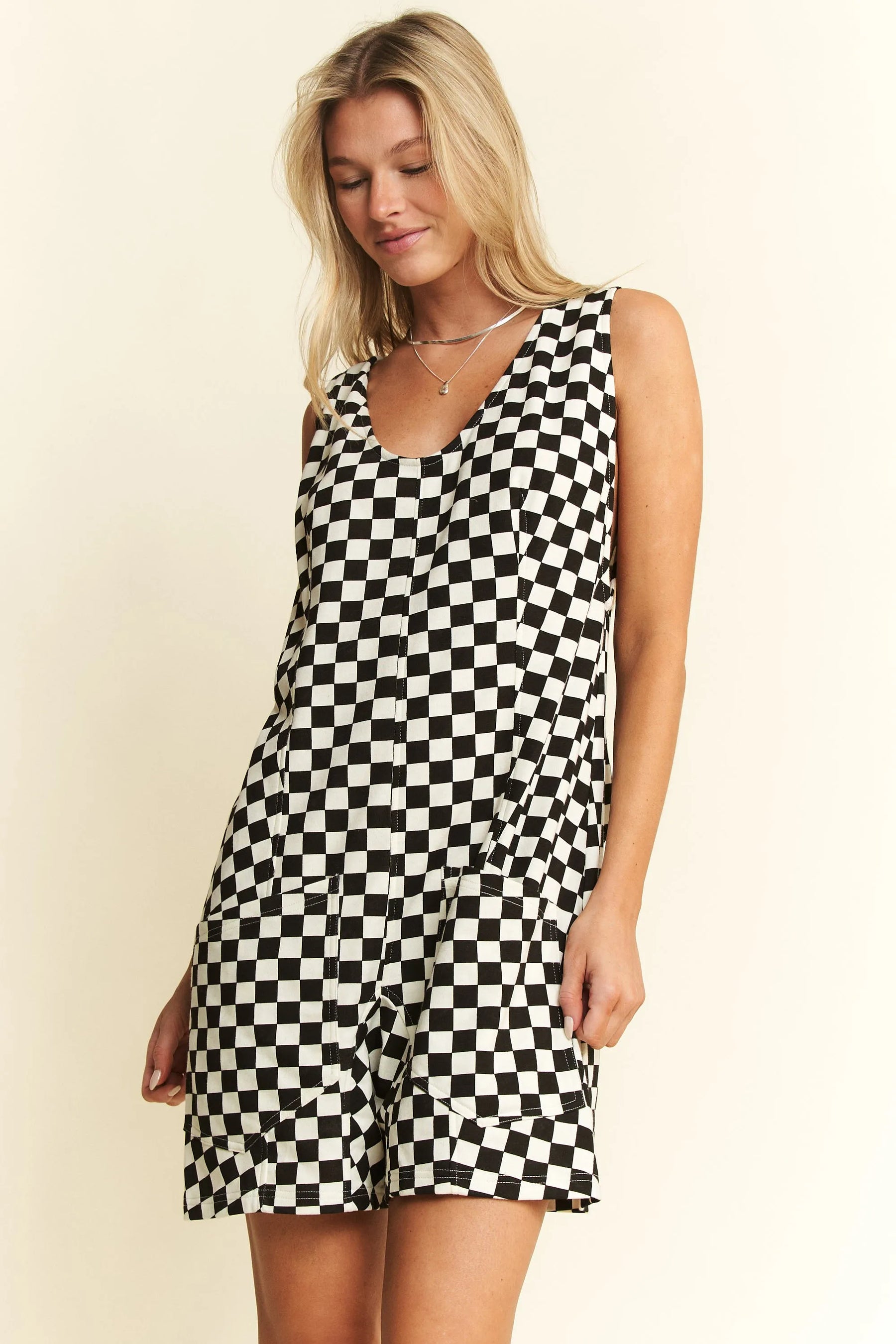 Jade By Jane Plus Size Back Tie Sleeveless Plaid Romper