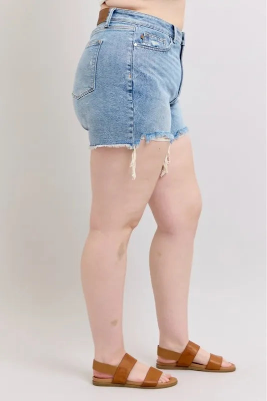Judy Blue Plus Size HW Rigid Magic Destroy Cut Off Denim Shorts