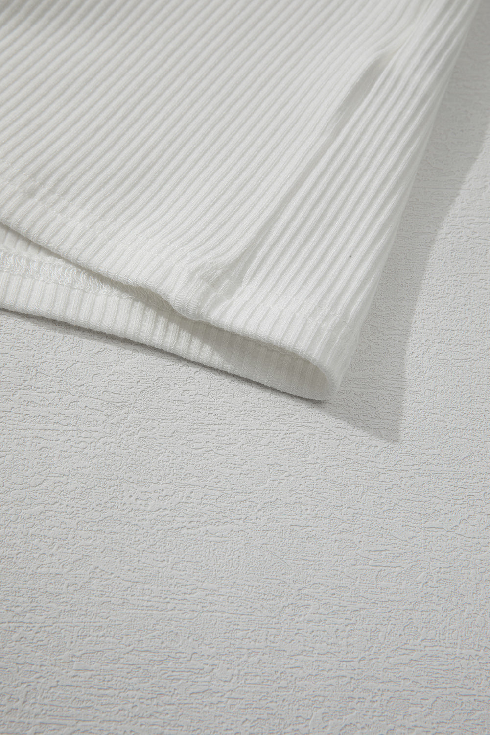 Children's Floral Applique Ribbed Top & Button Decor Skirt Set