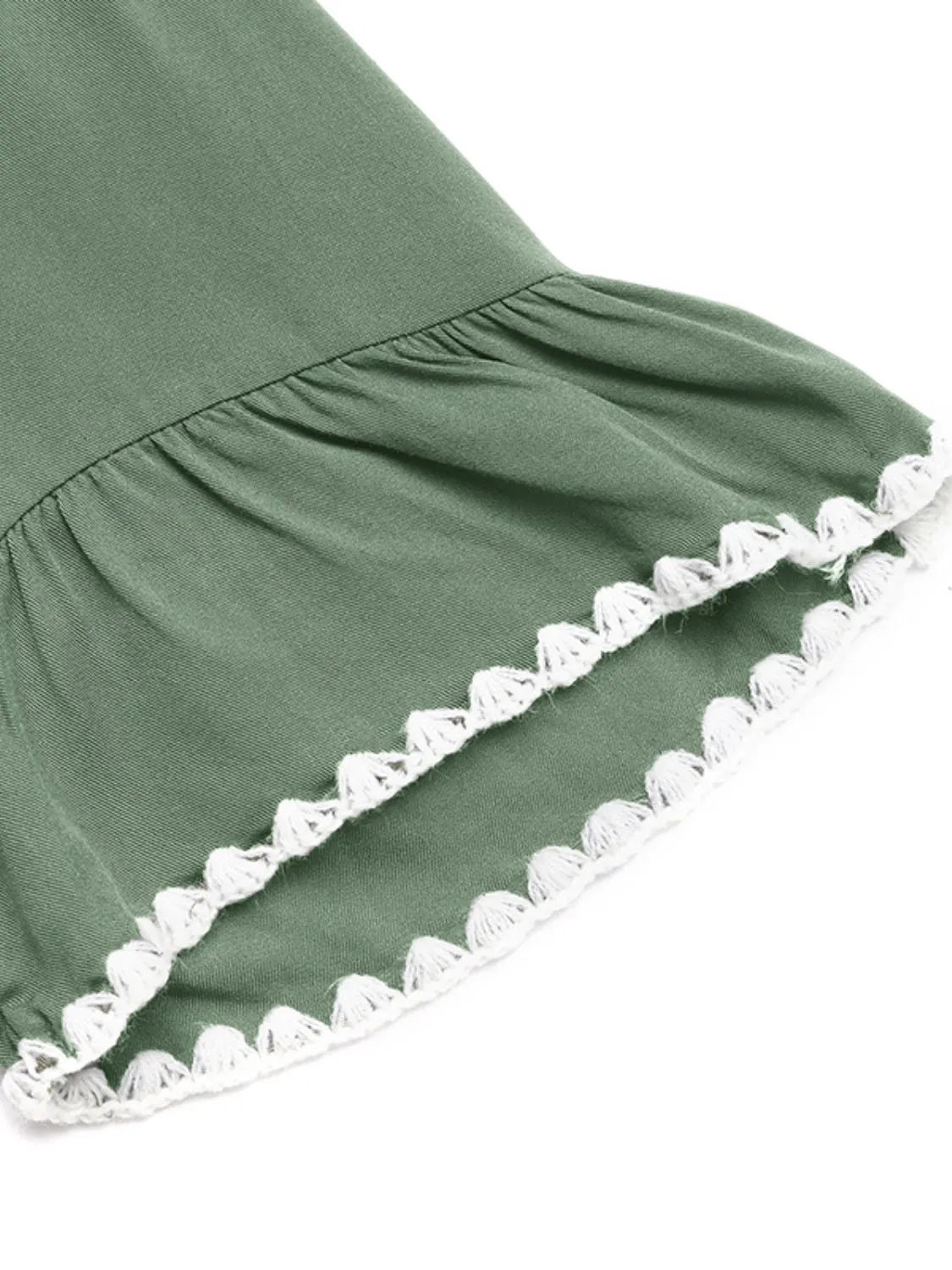 Lace Detail Notched Flounce Sleeve Mini Dress