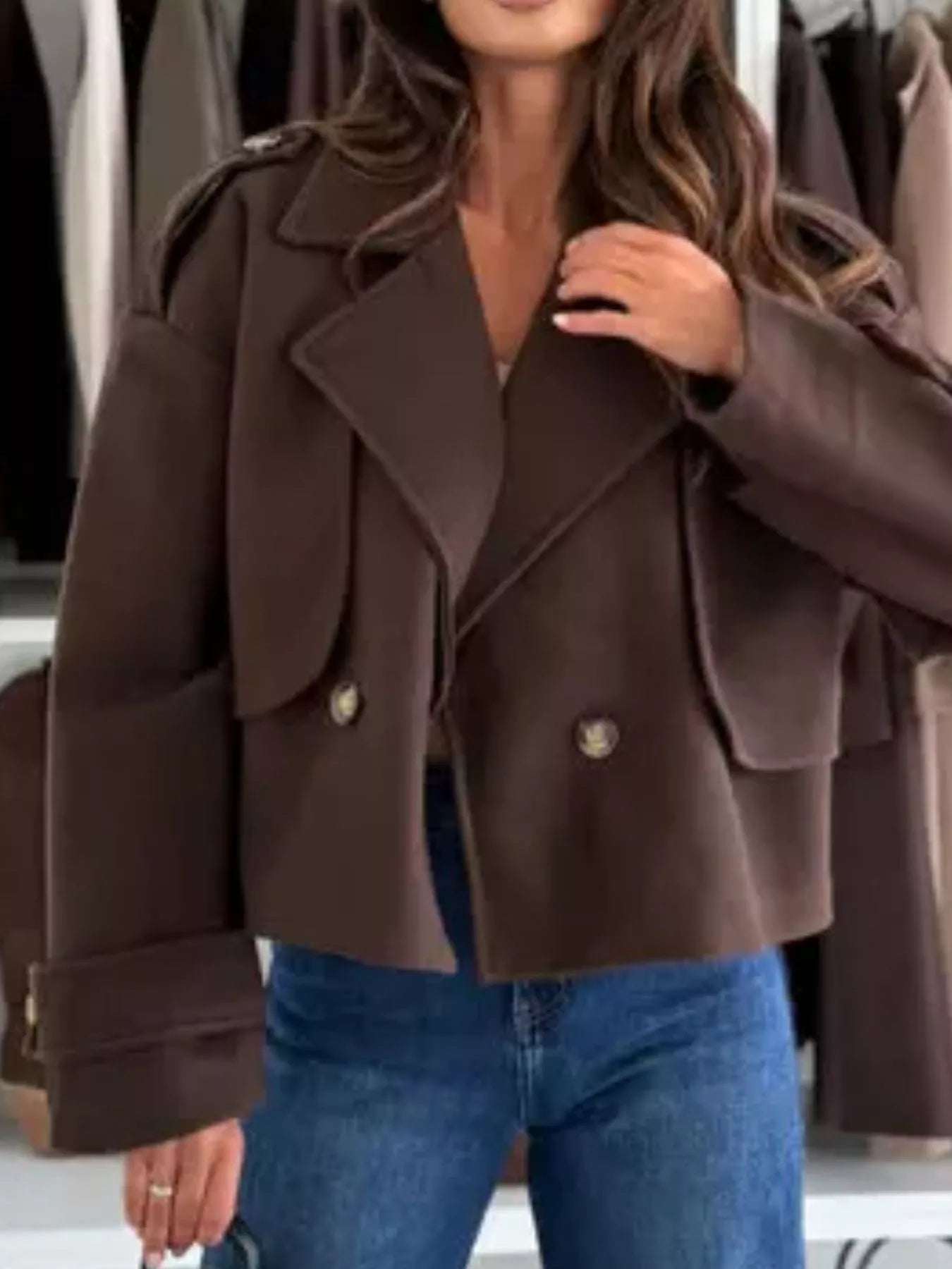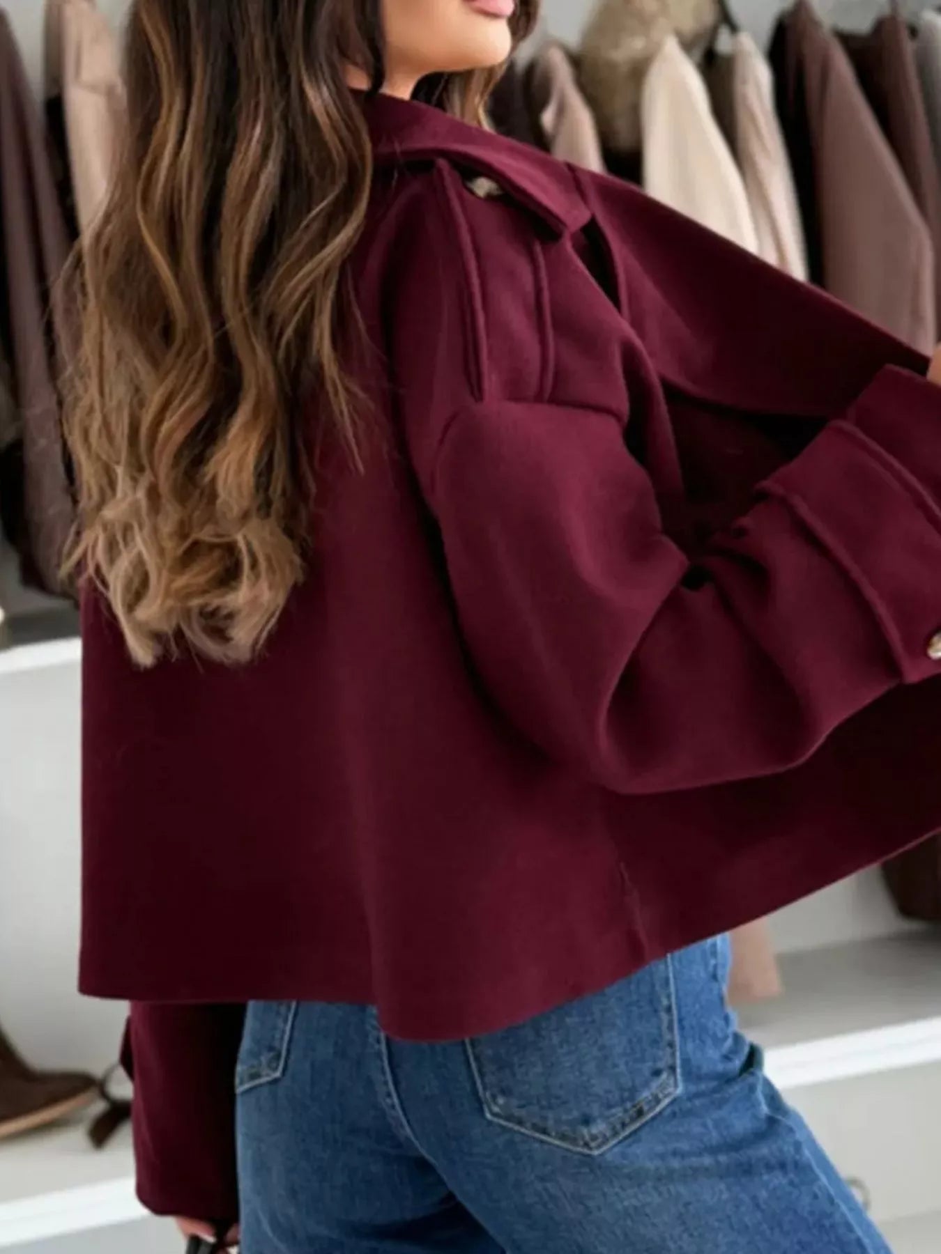 Lapel Collar Dropped Shoulder Jacket