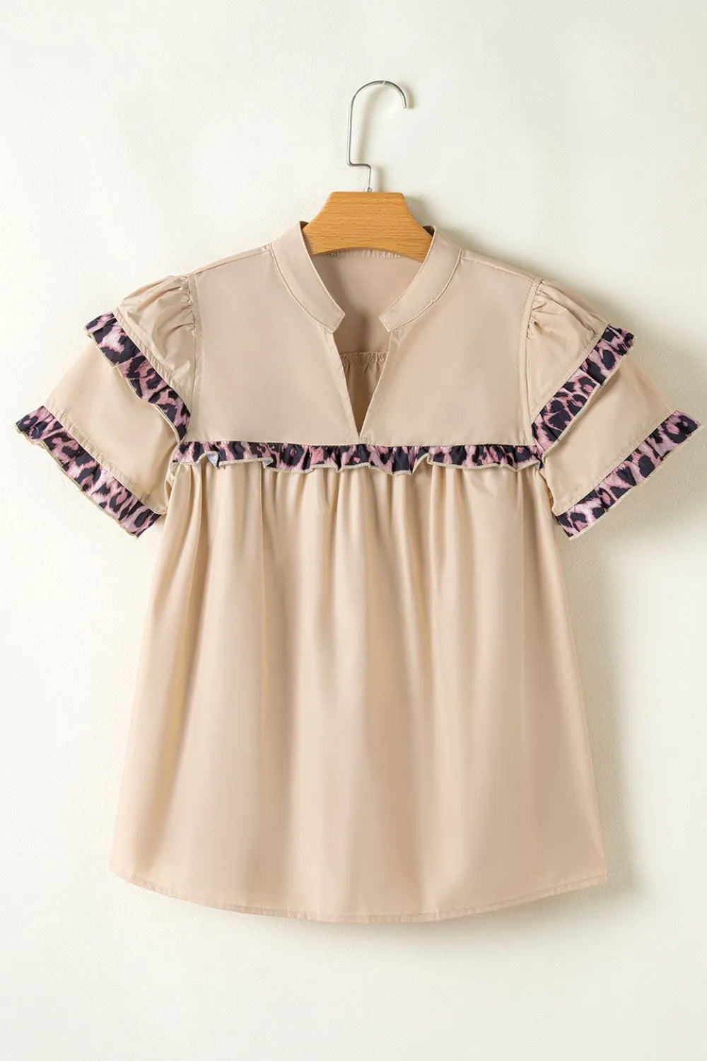 Contrast Scallop Trim V Neck Long Sleeve Blouse