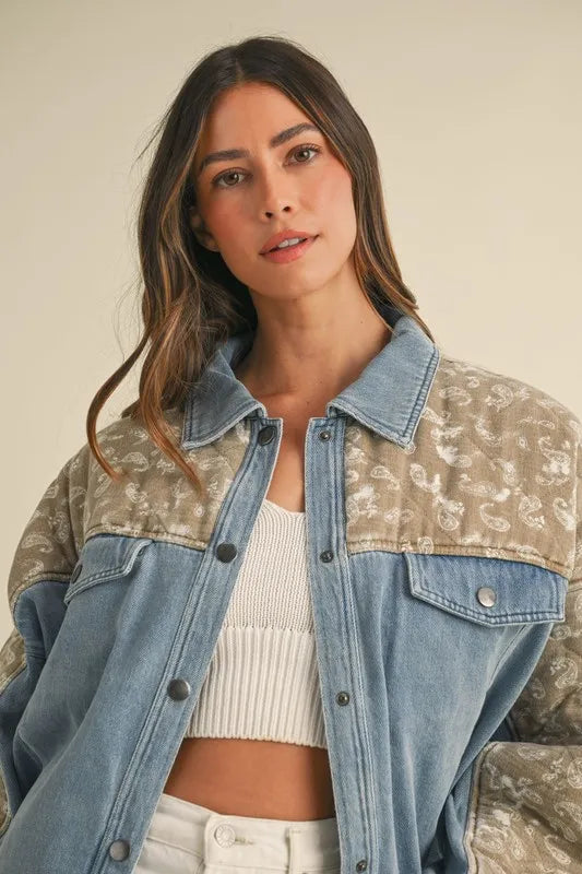 MABLE Quilted Paisley Print Contrast Denim Jacket