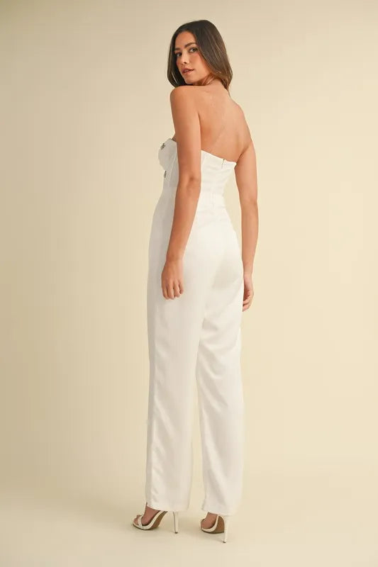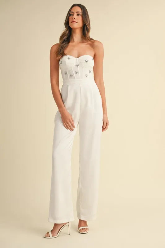 MABLE Rhinestone Applique Bustier Jumpsuit