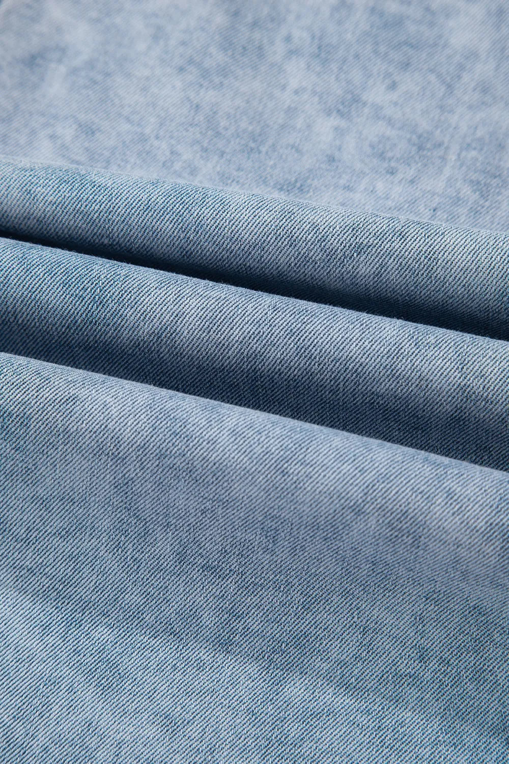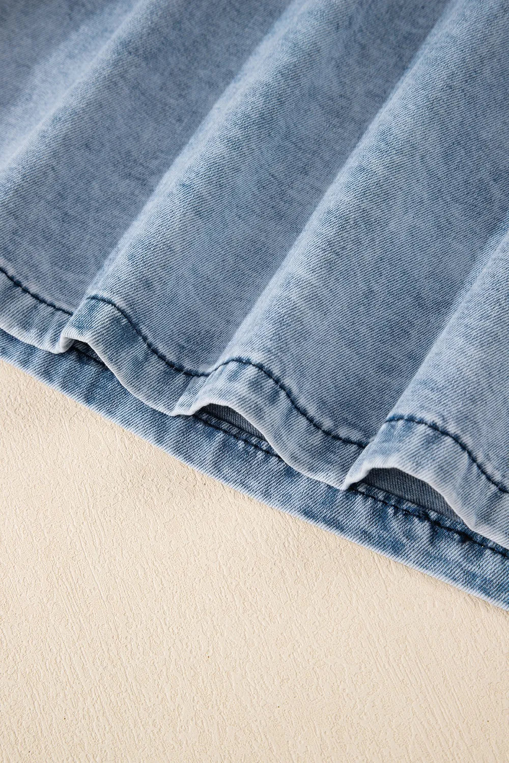 Mineral Wash Denim Frayed U Neck Sleeveless Top