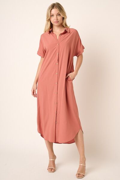 Mittoshop Collared Neck Dolman Short Sleeve Midi Shirt Dress