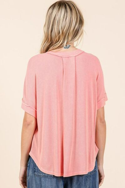 Mittoshop Mineral Wash Henley Short Sleeve Waffle Knit Top