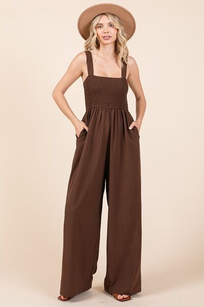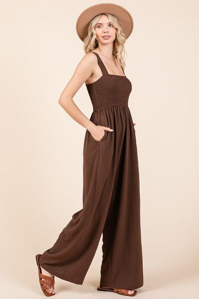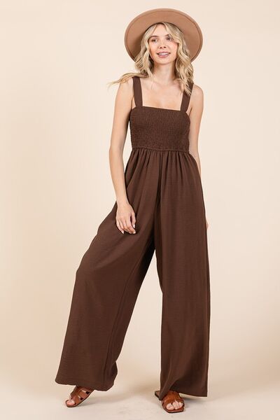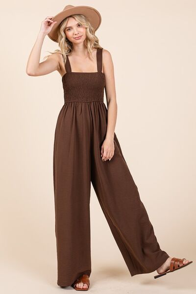 Mittoshop Smocked Wide Strap Wide Leg Overalls
