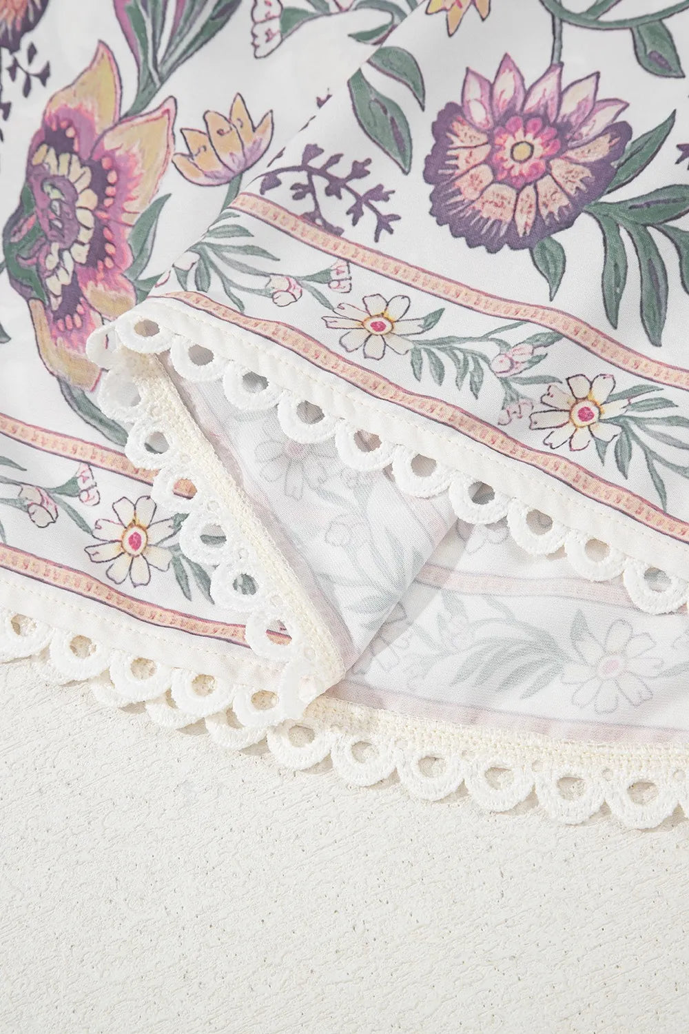 Multicolour Floral Tie Neck Sleeveless Mini Dress