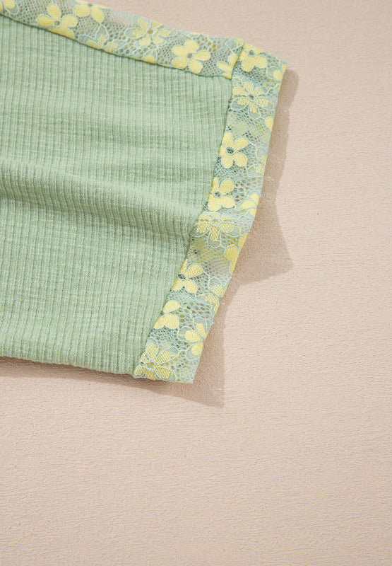 Children's Floral Applique Ribbed Top & Button Decor Skirt Set
