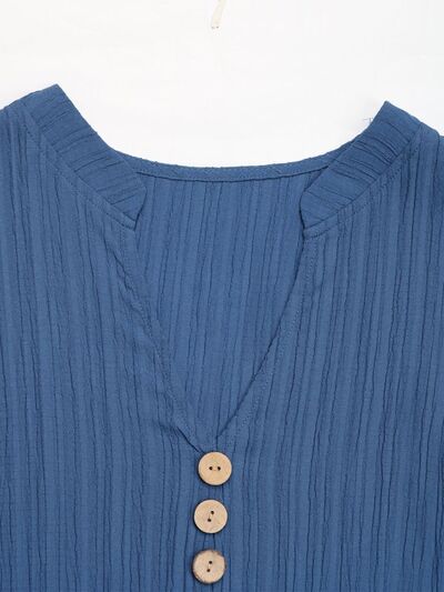 Perfee Decorative Button Notched Sleeveless Tiered Dress