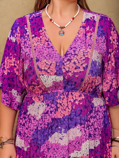 Plus Size Slit Printed Half Sleeve Maxi Dress