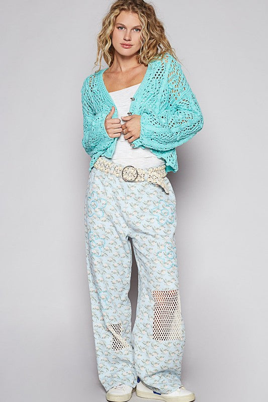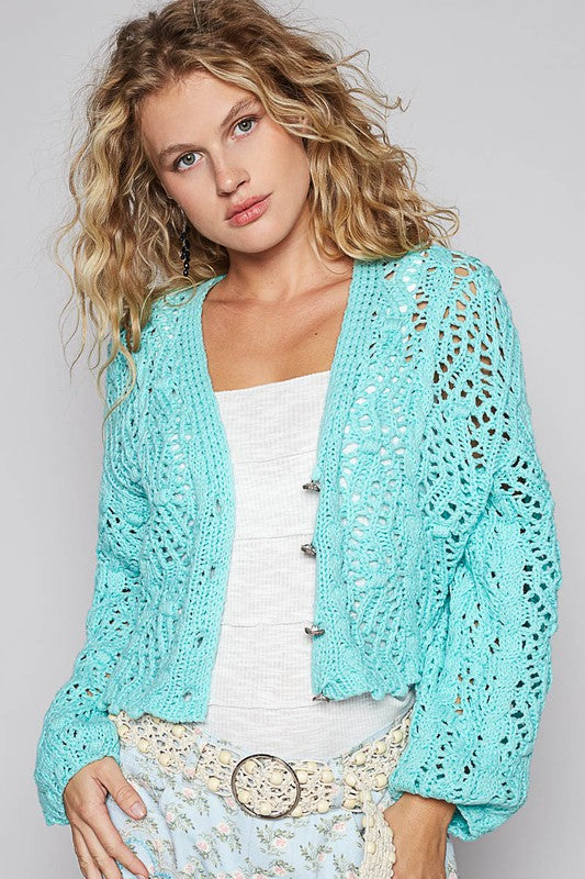 POL Cable-Knit Openwork V-Neck Button Up Cardigan