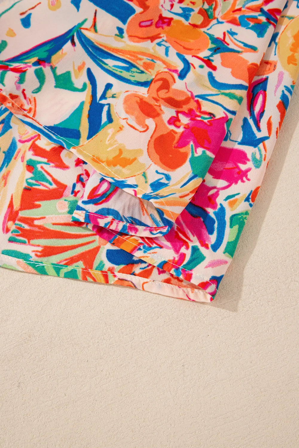 Printed Notched Long Sleeve Blouse