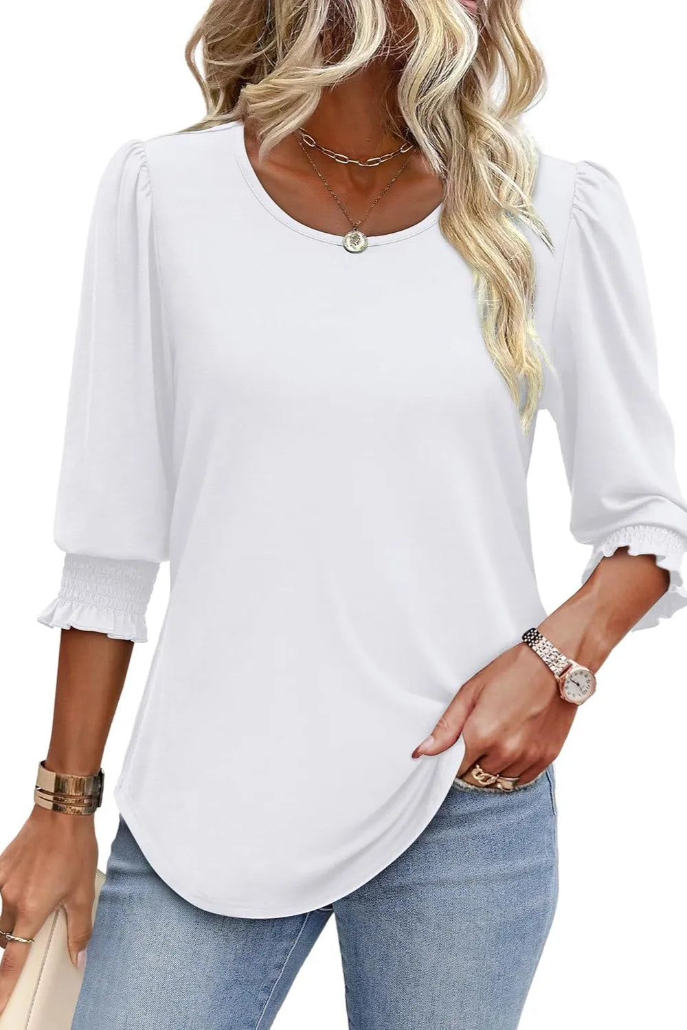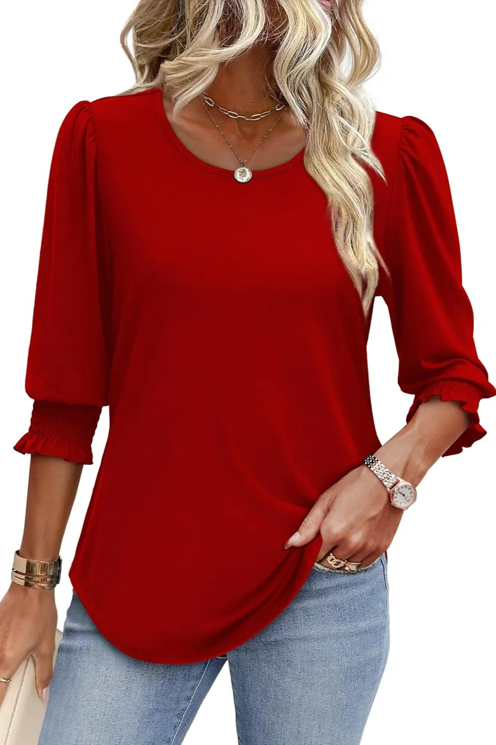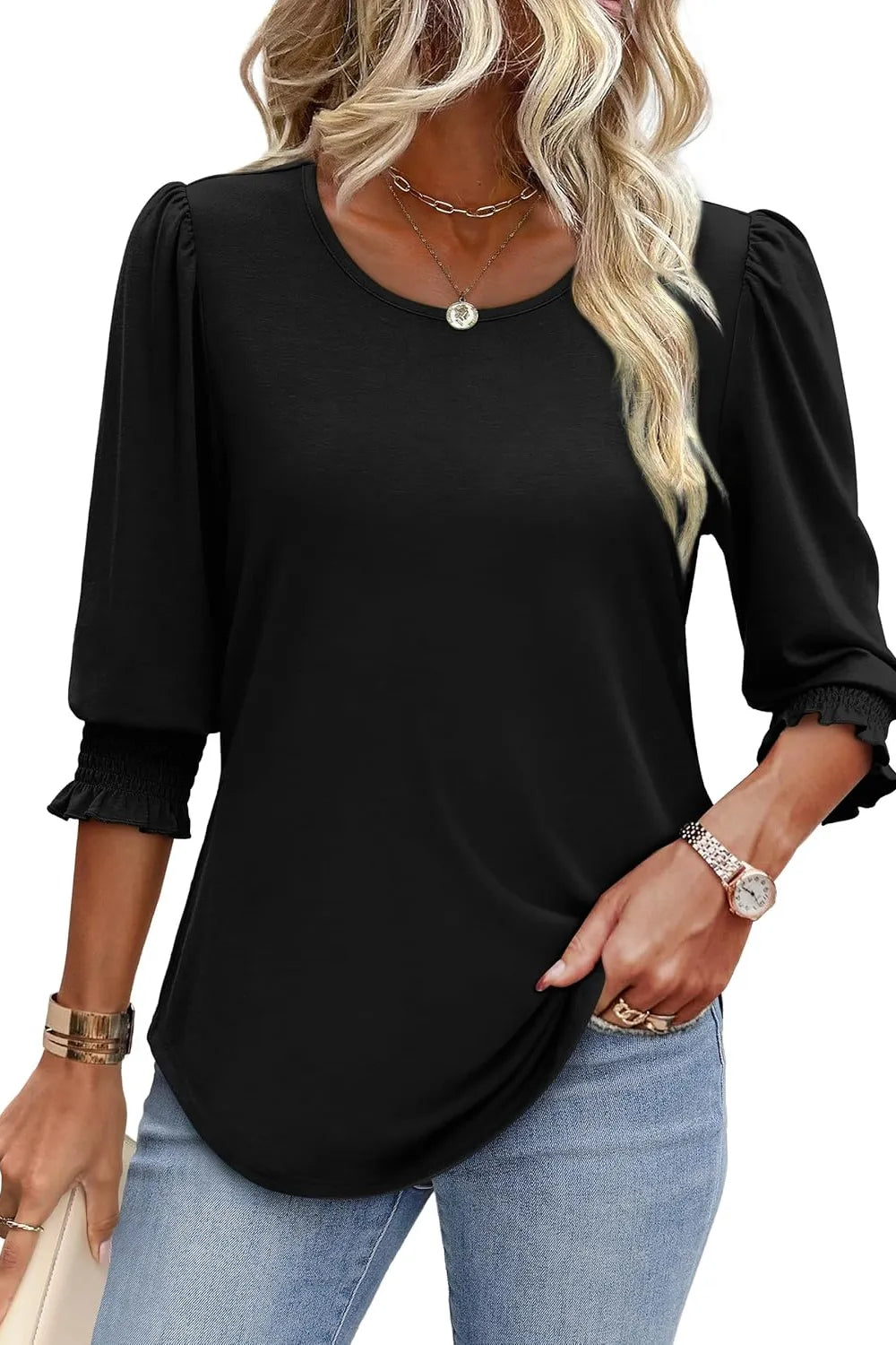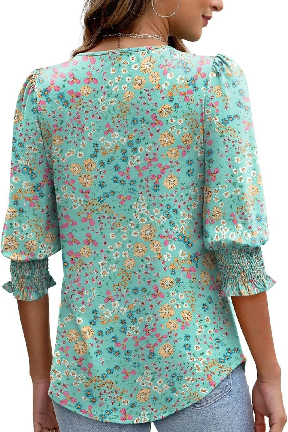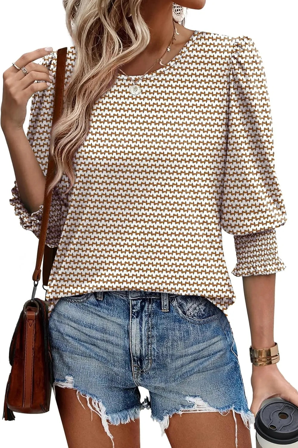 Printed Round Neck Three-Quarter Sleeve Blouse