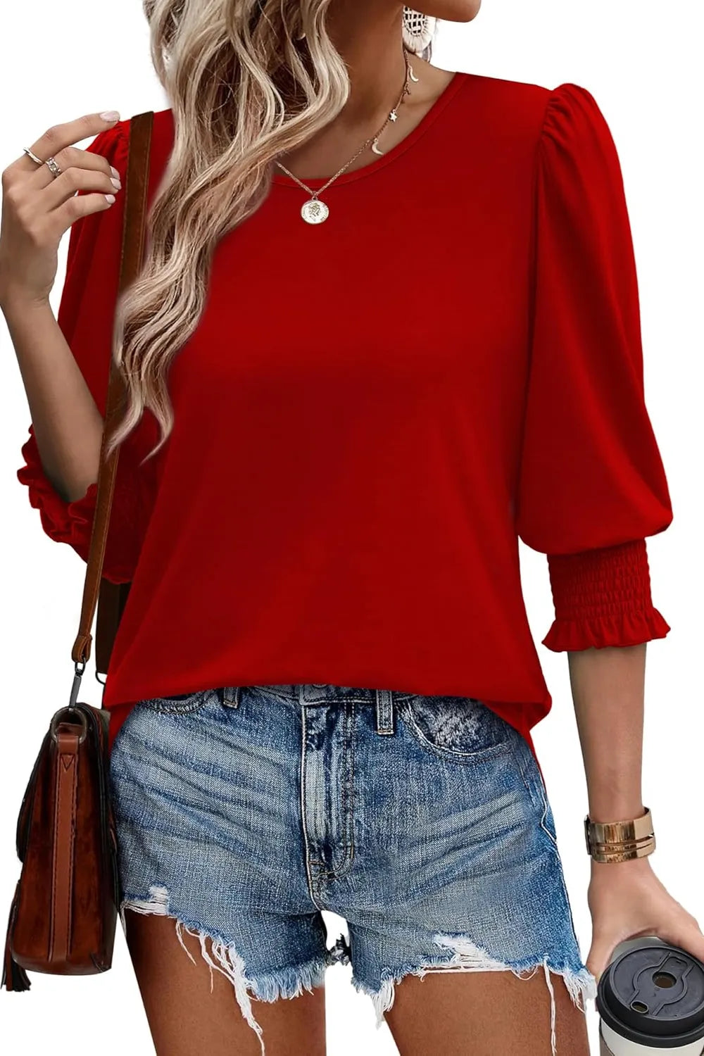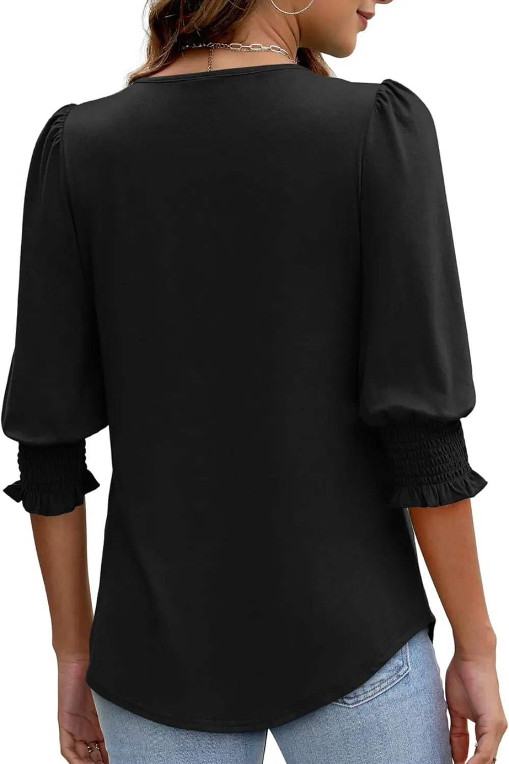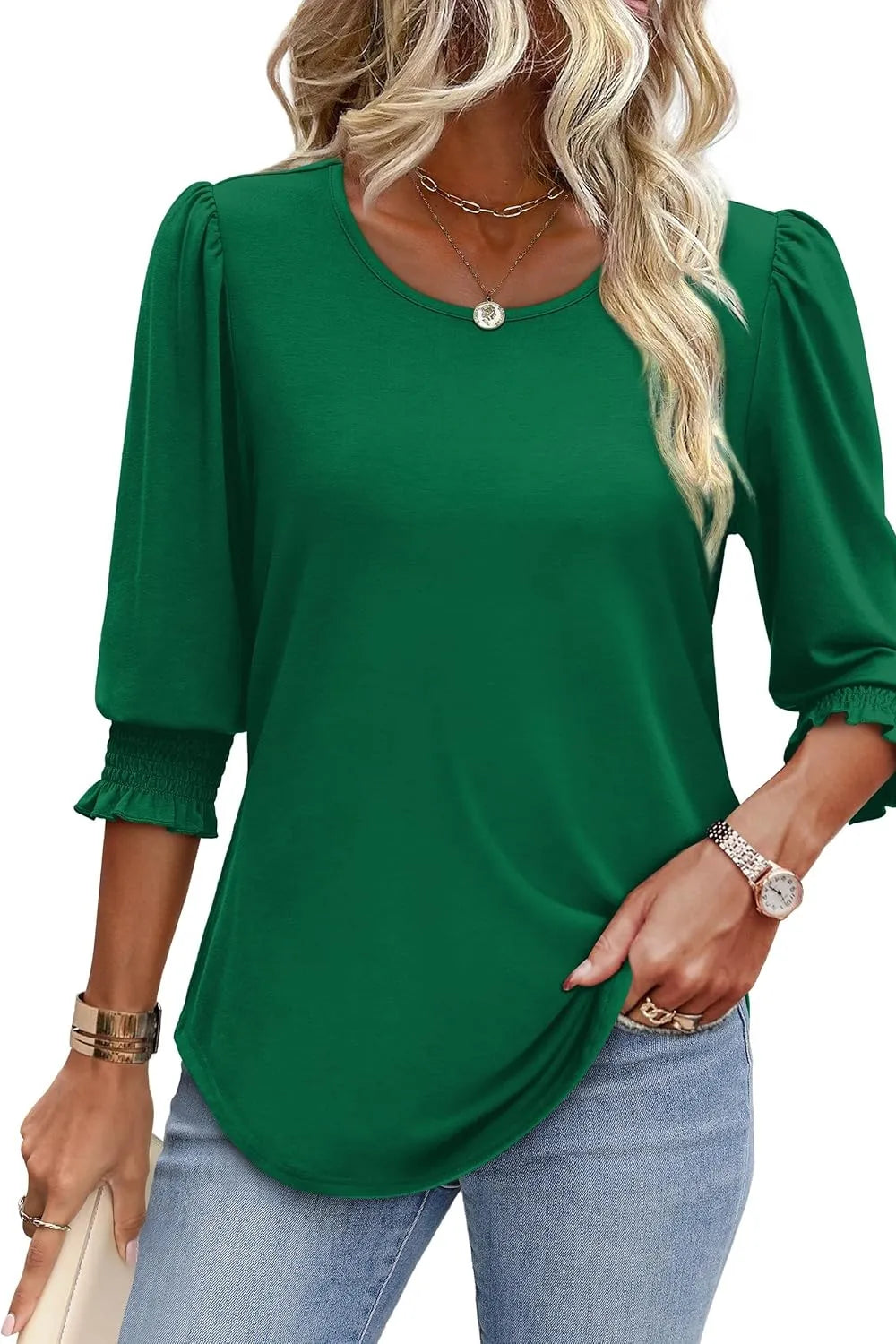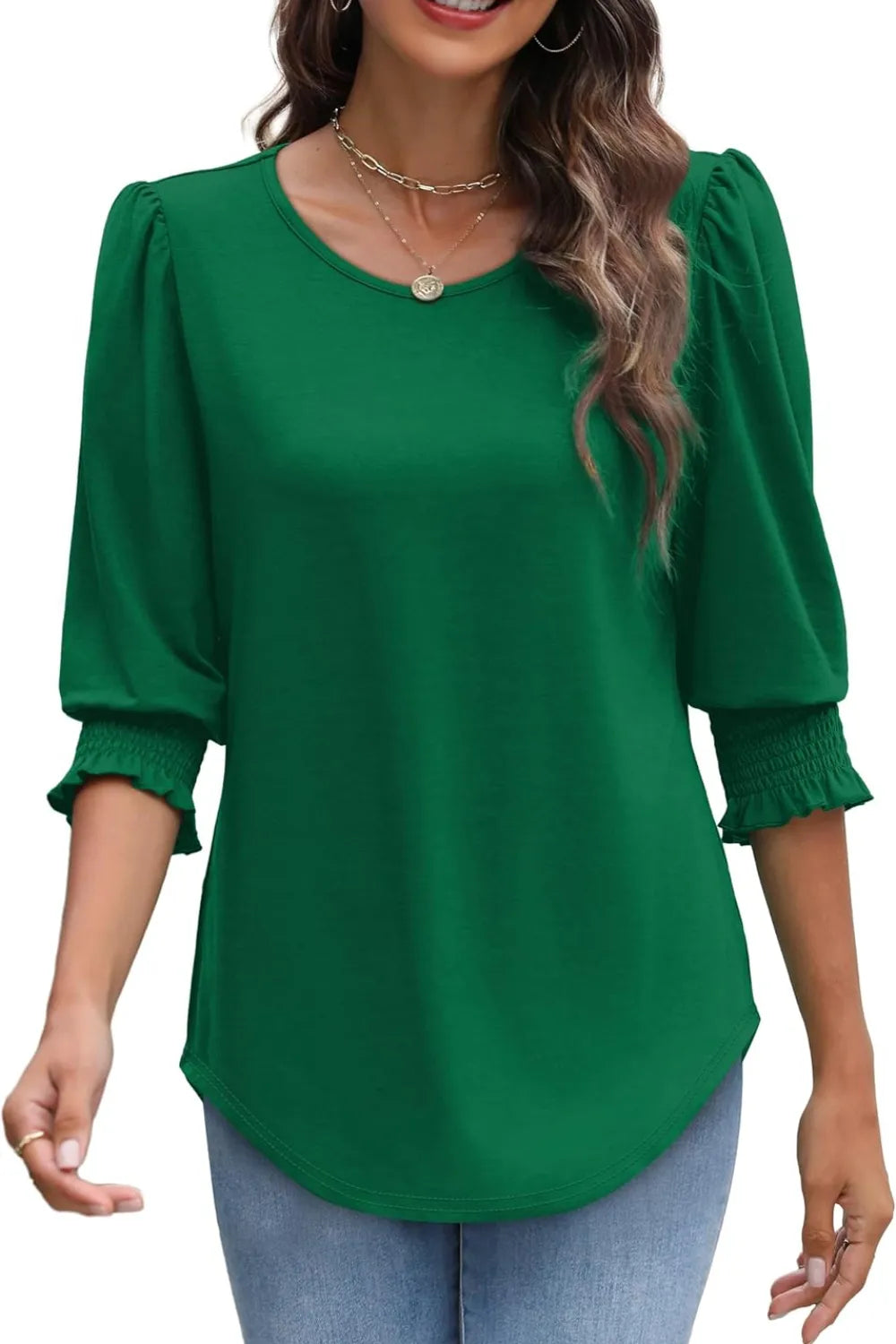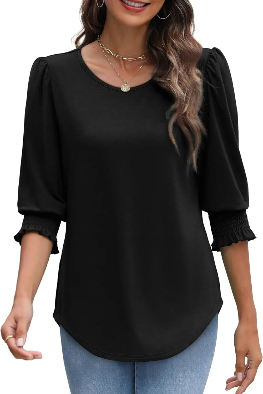 Printed Round Neck Three-Quarter Sleeve Blouse