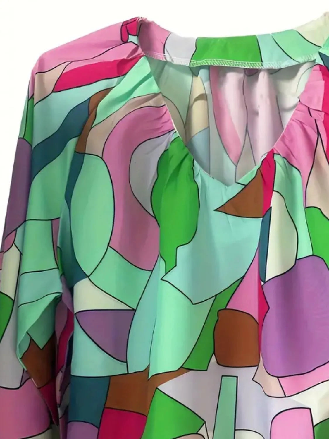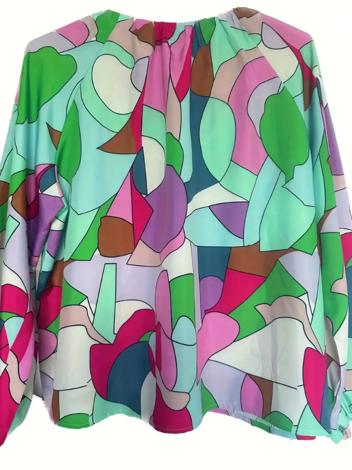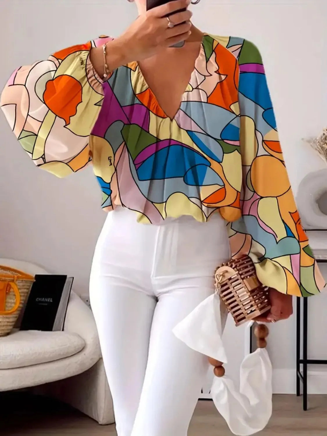 Printed V-Neck Long Sleeve Blouse