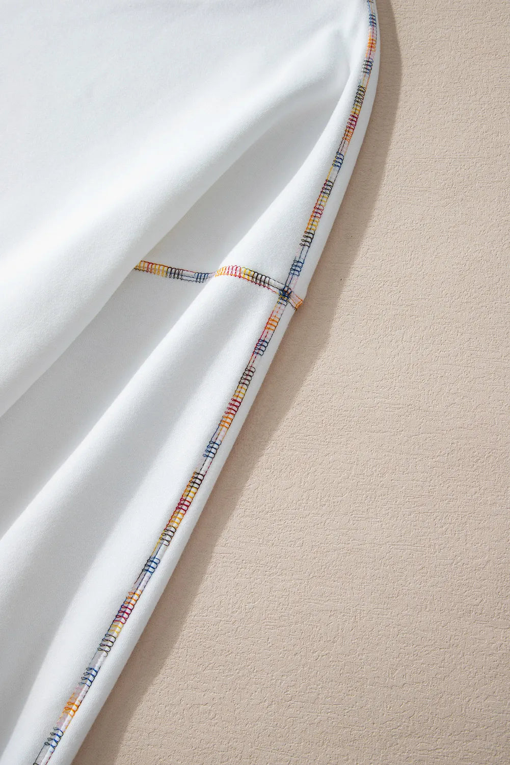 Rainbow Trim Round Neck Long Sleeve Sweatshirt