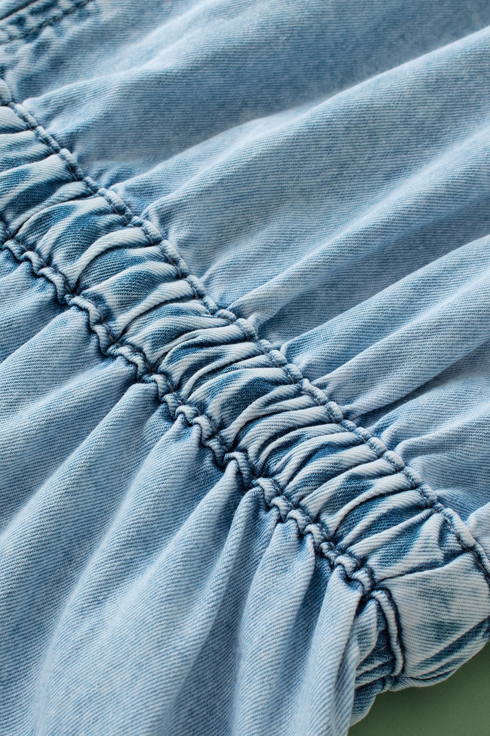 Raw Hem Studded V-Neck Drawstring Sleeveless Denim Romper