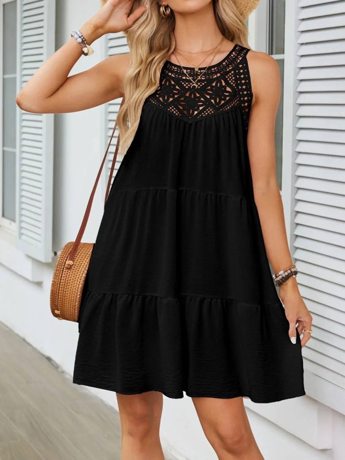 Ruffled Hem Lace Sleeveless Dress