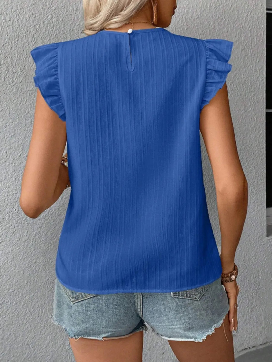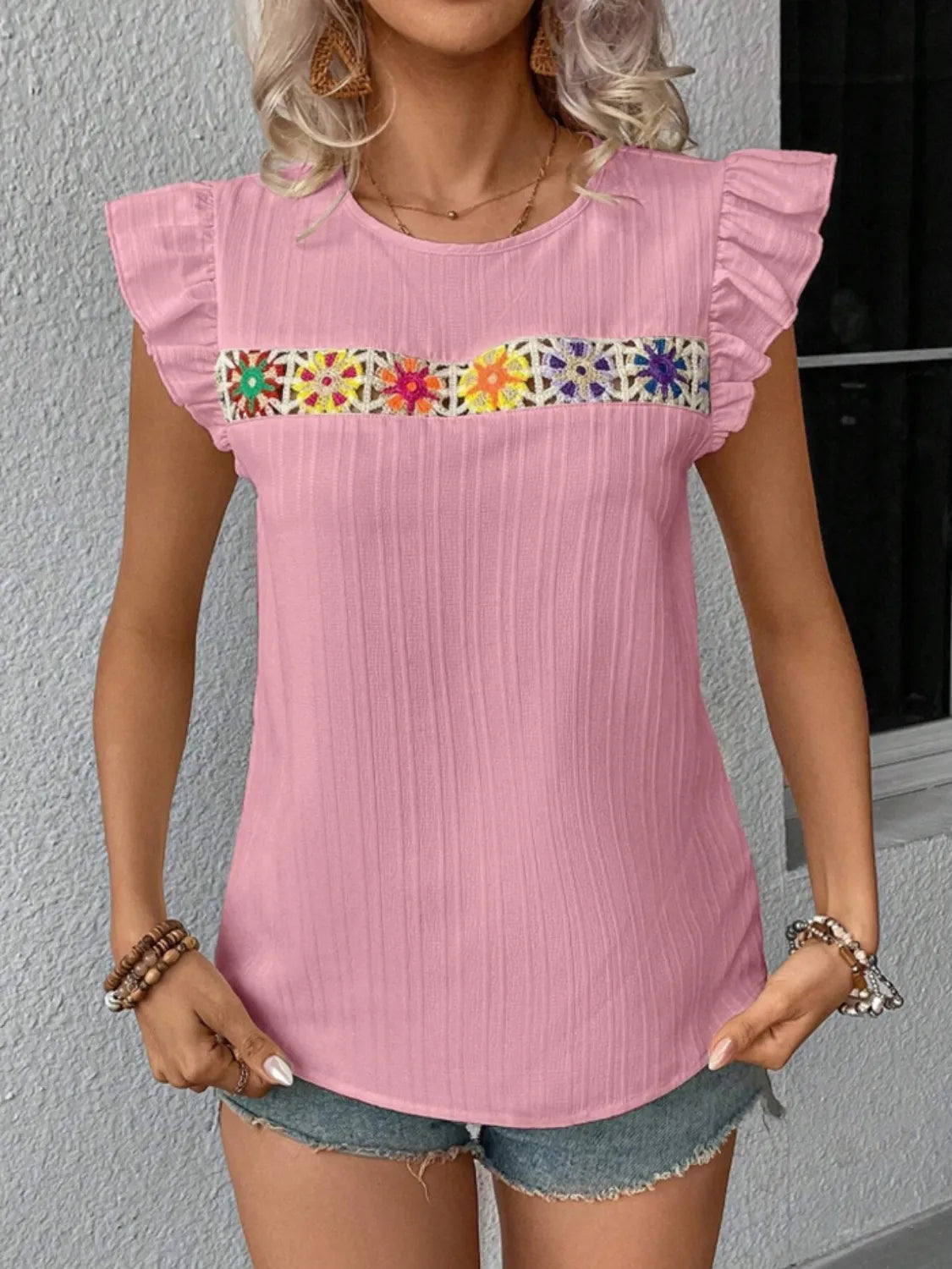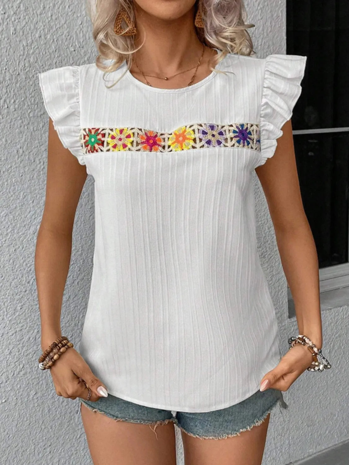 Contrast Scallop Trim V Neck Long Sleeve Blouse