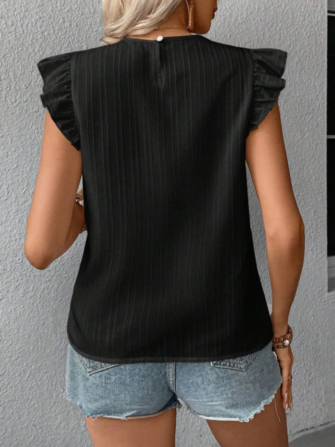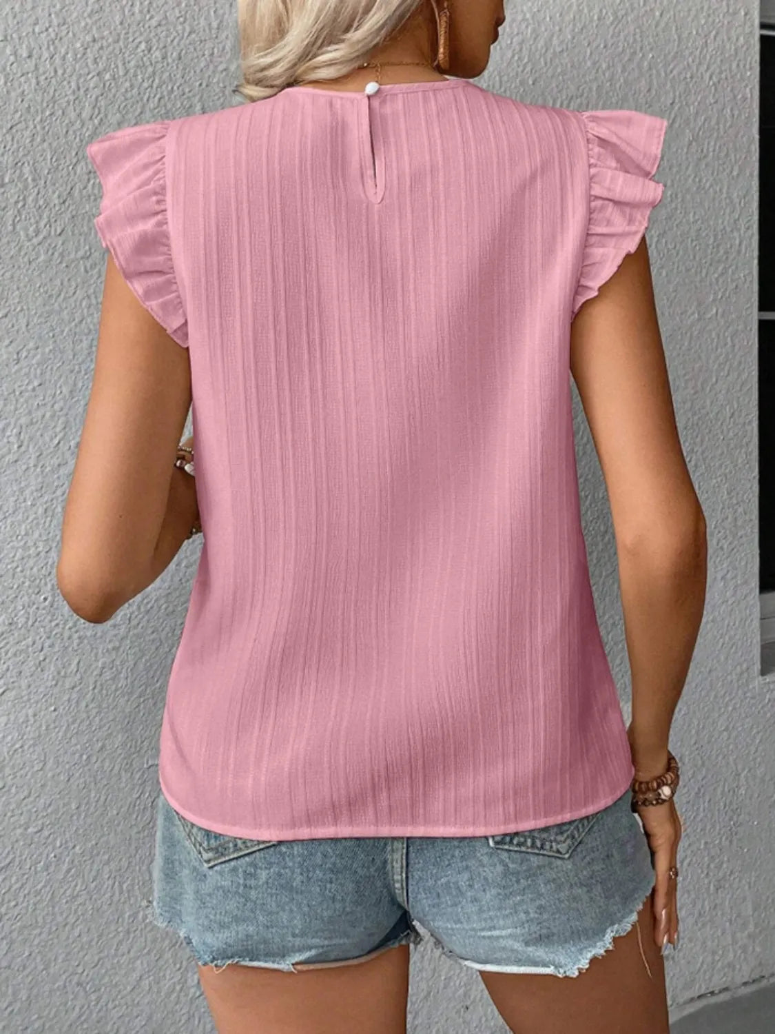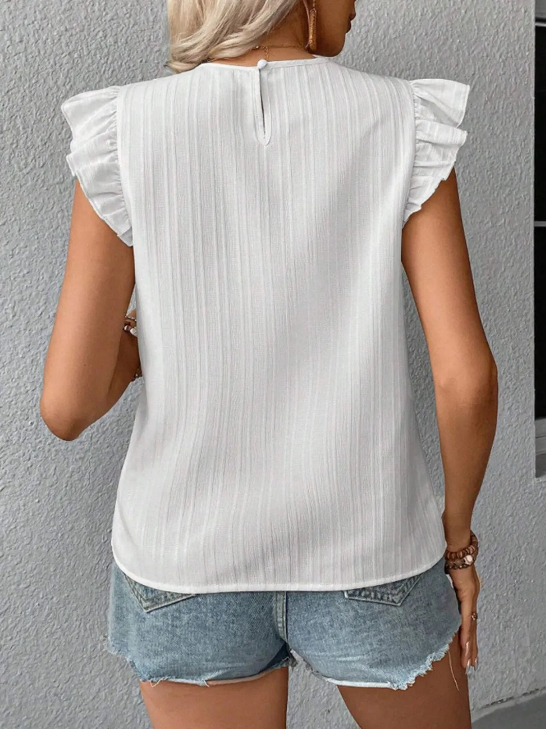 Contrast Scallop Trim V Neck Long Sleeve Blouse