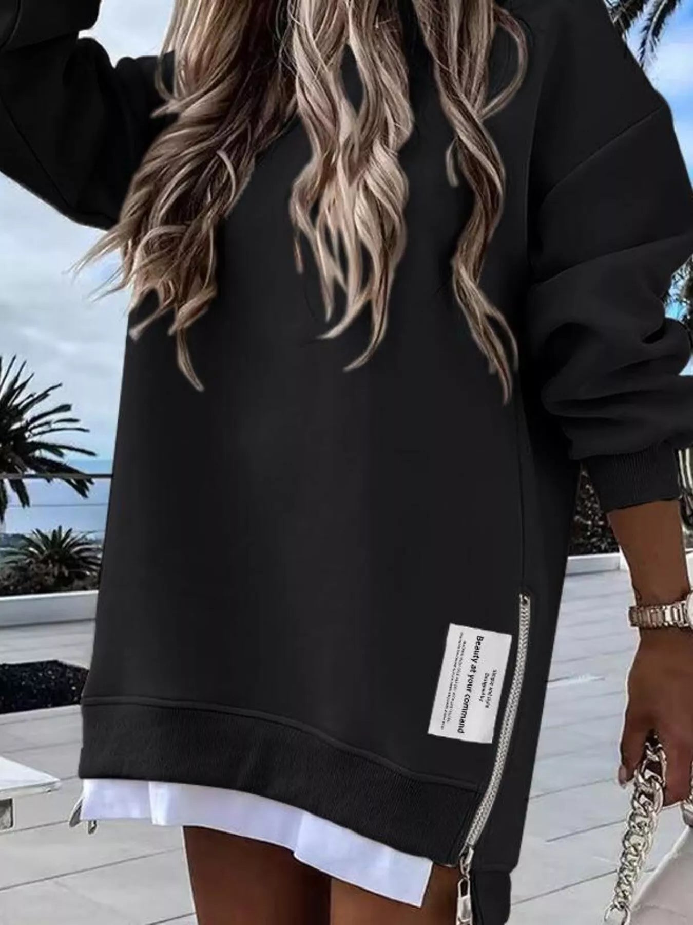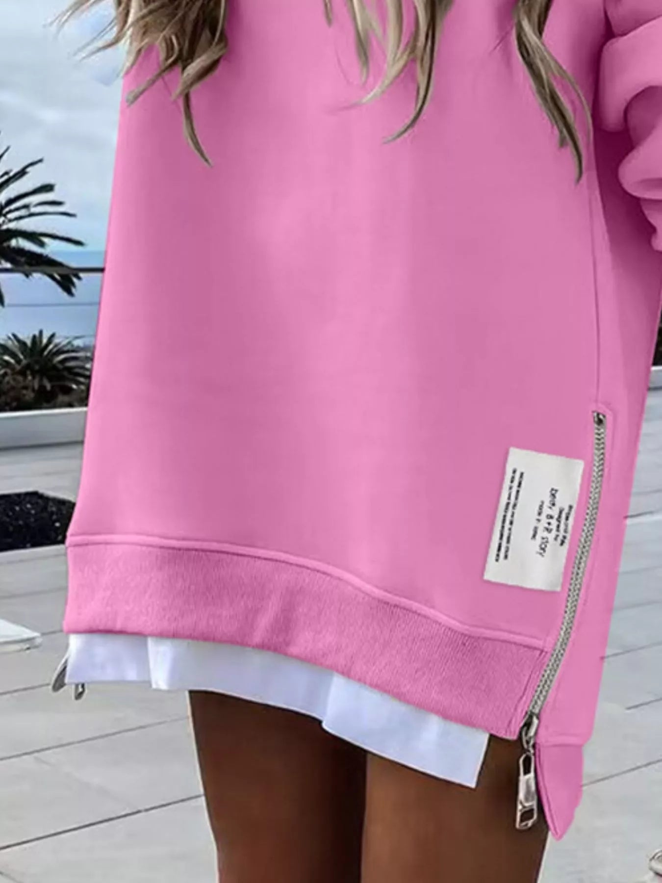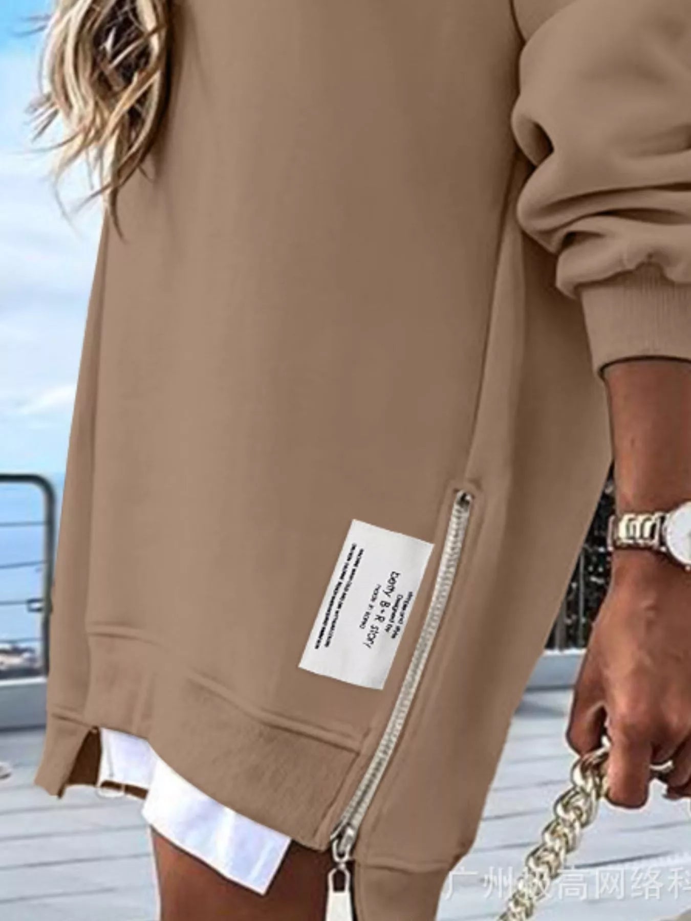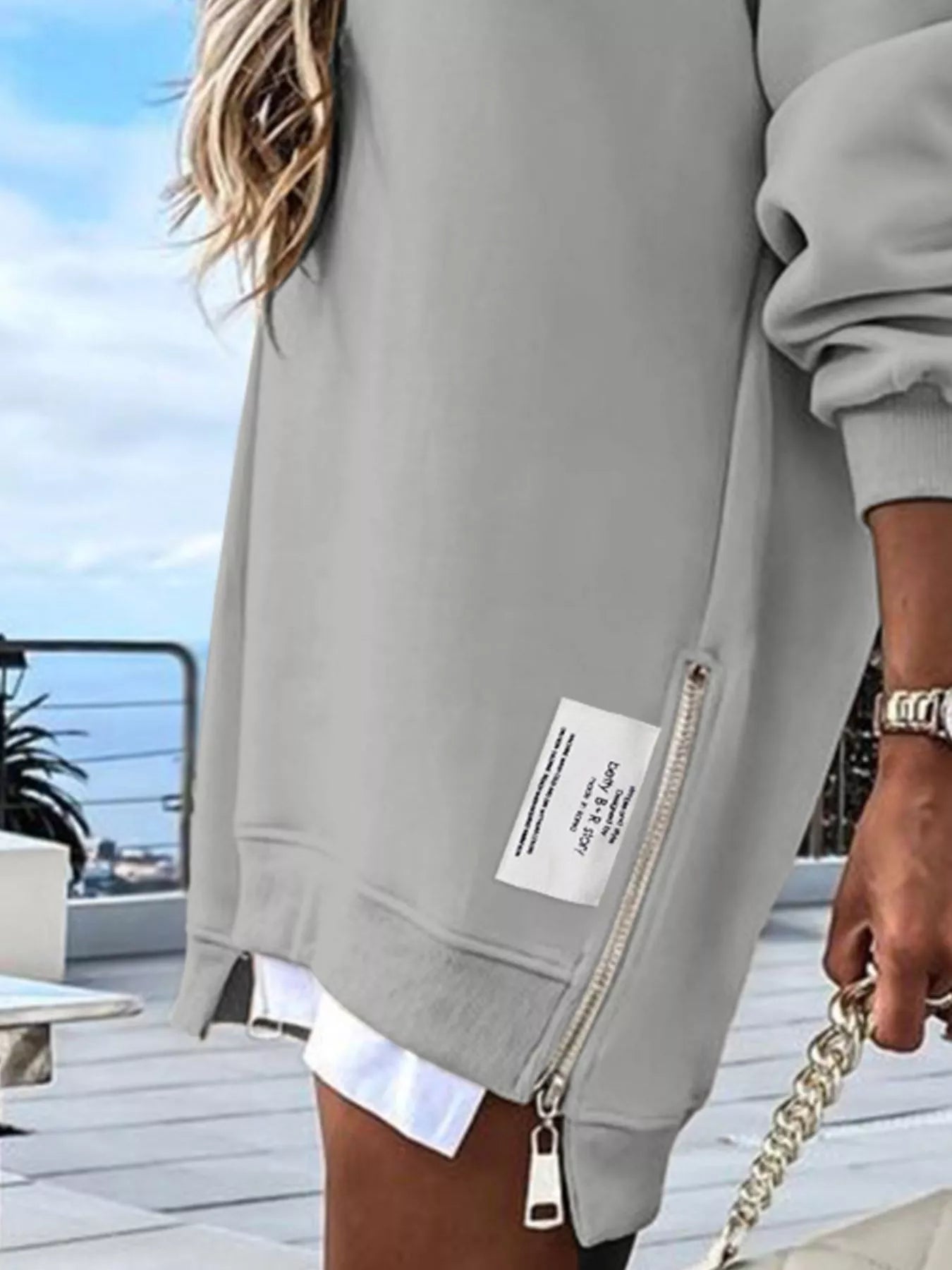 Side Slit Round Neck Long Sleeve Sweatshirt