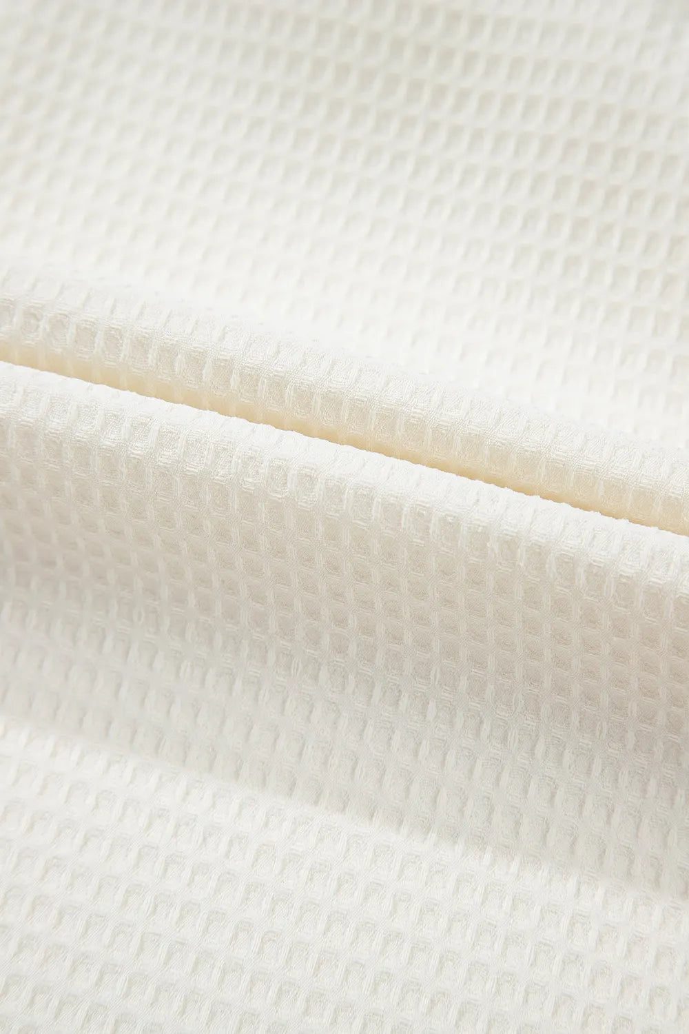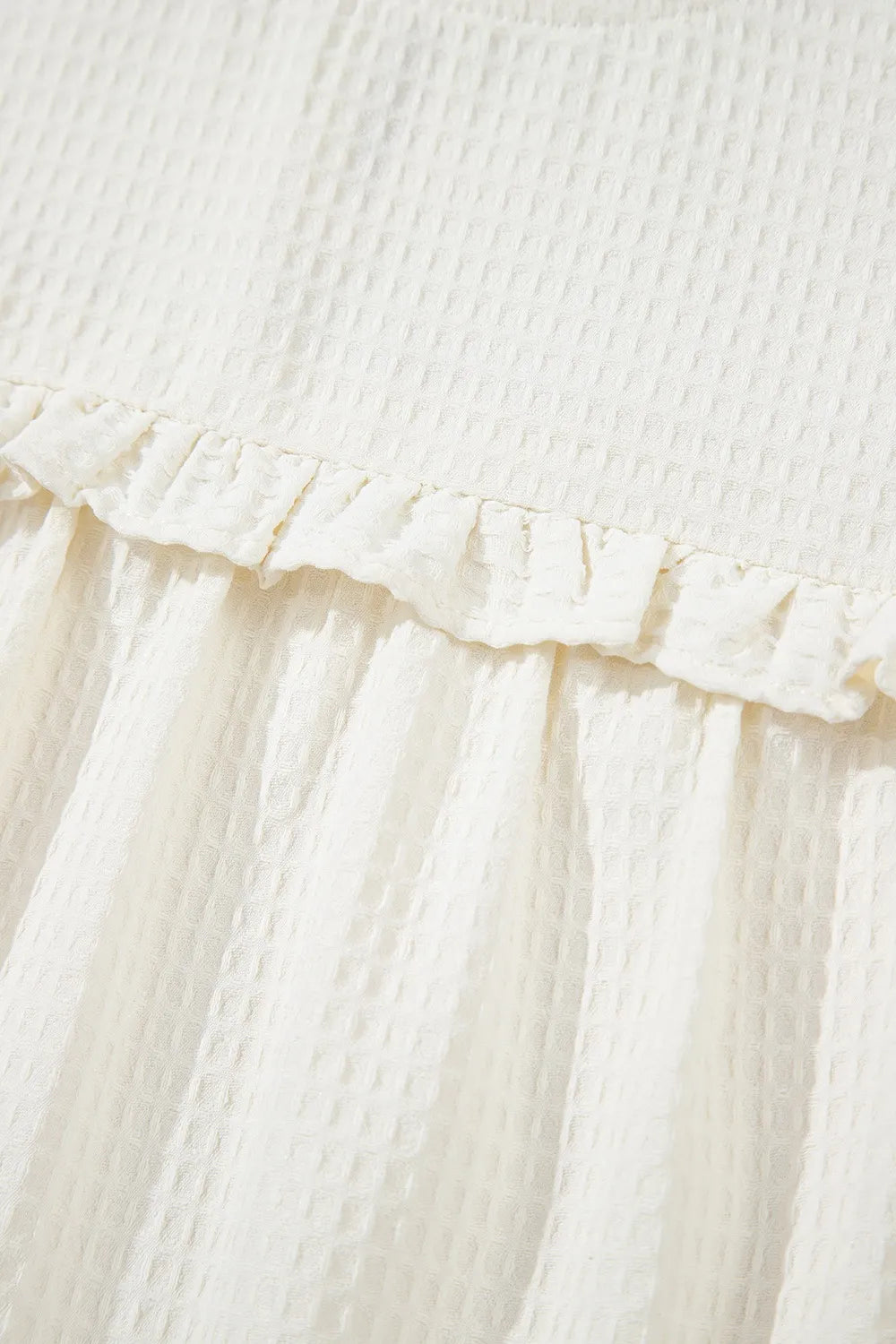 Solid Color Ruffle Trim Waffle Knit Blouse